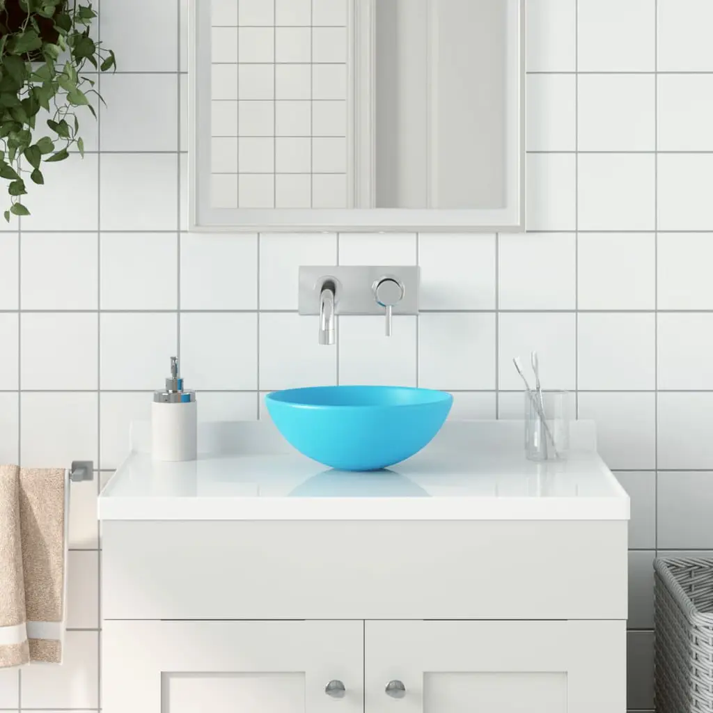 Our above mount round bathroom sink adds contemporary flair to any bathroom decor. It is also suitable for cosmetic room, kitchen, garage or workplace. It can be mounted above counter or put on the top of bathroom console.The quality ceramic with a matt surface is easy to clean. No overflow and countertop faucet installation create a clean and sleek appearance. This basin is designed with 1.8 " drainage hole. Please note: The tap is not included in the delivery.