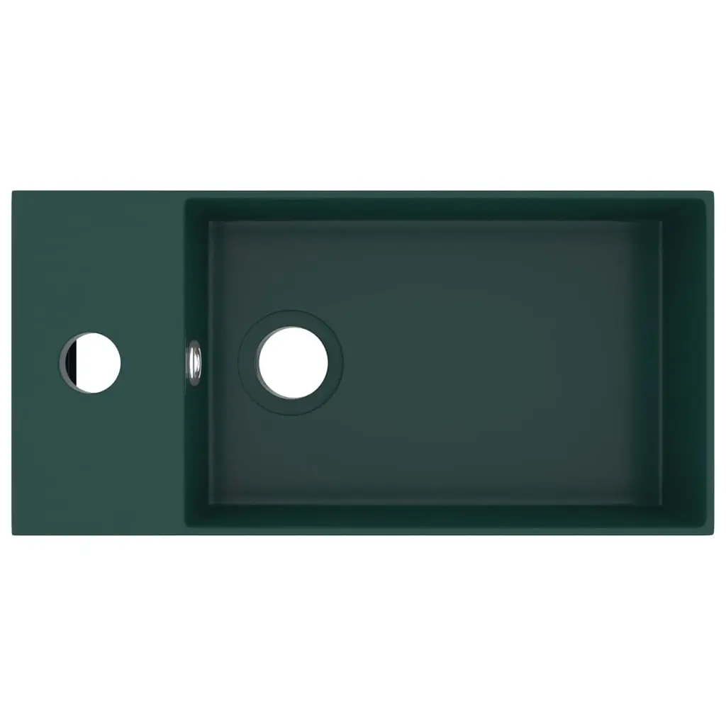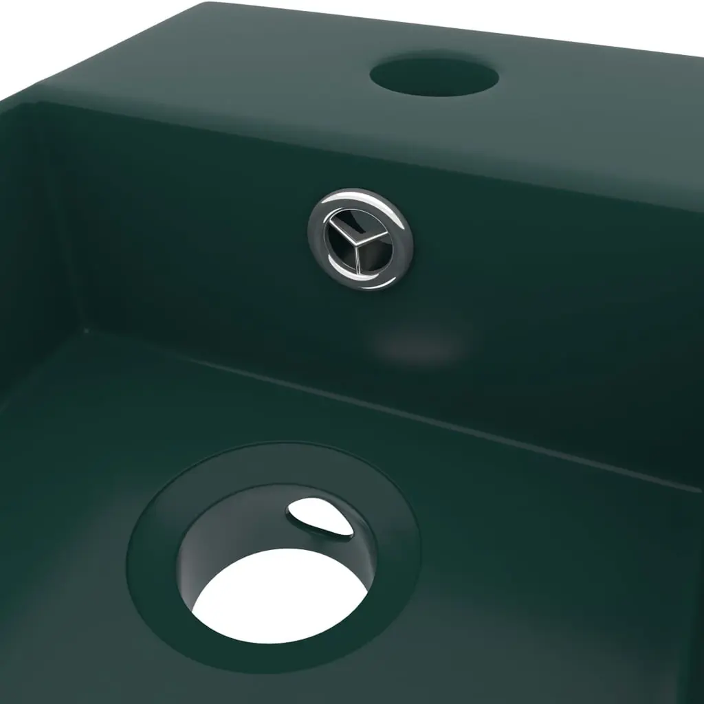 Vidaxl Bathroom Sink With Overflow Ceramic Dark Green
