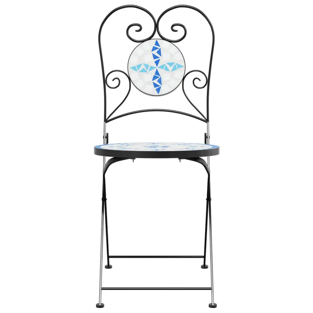 Vidaxl Bistro Chair Set Of 2 Blue And White Powder-Coated Iron, Ceramic