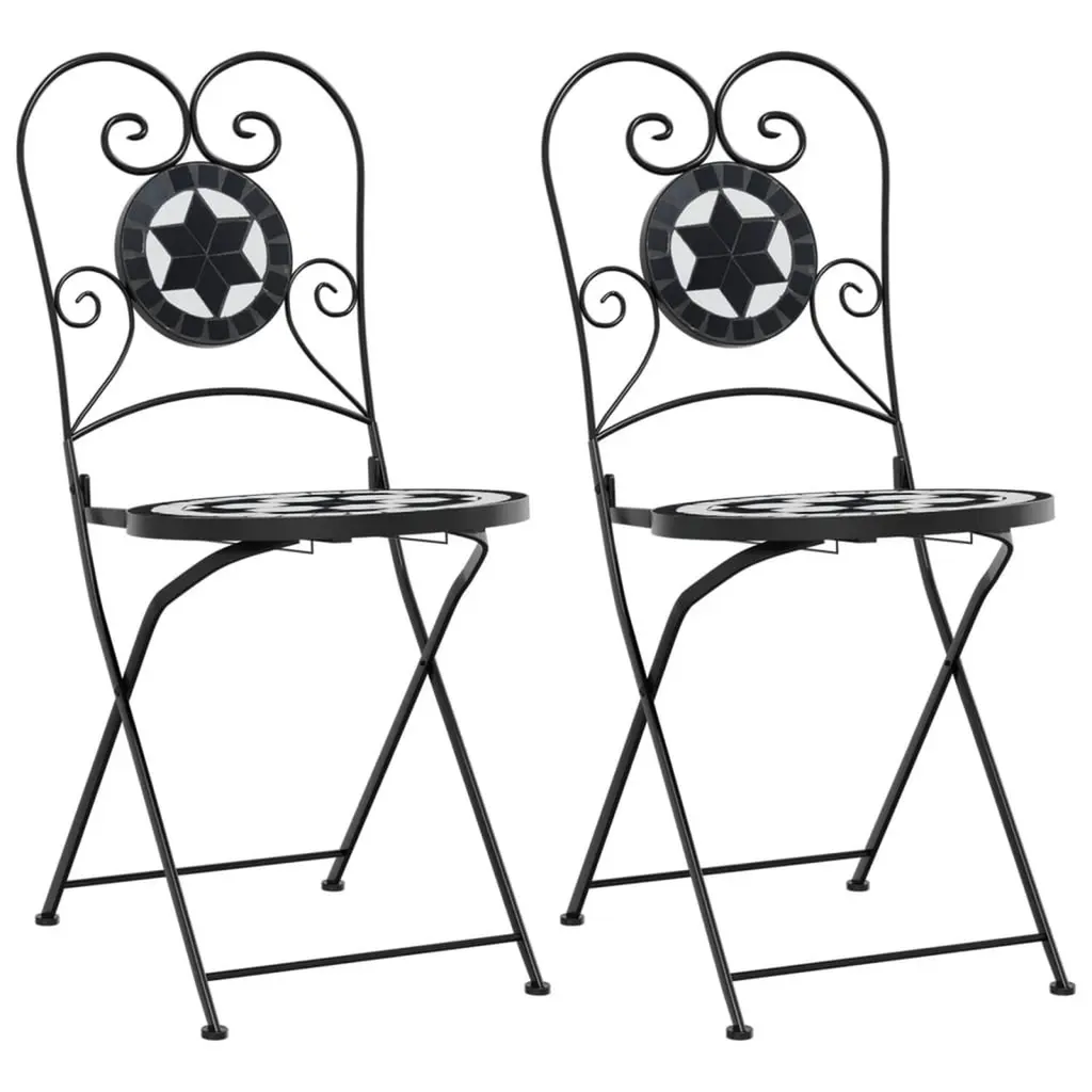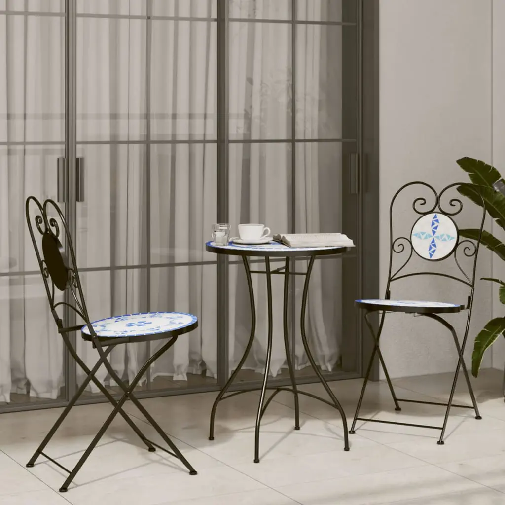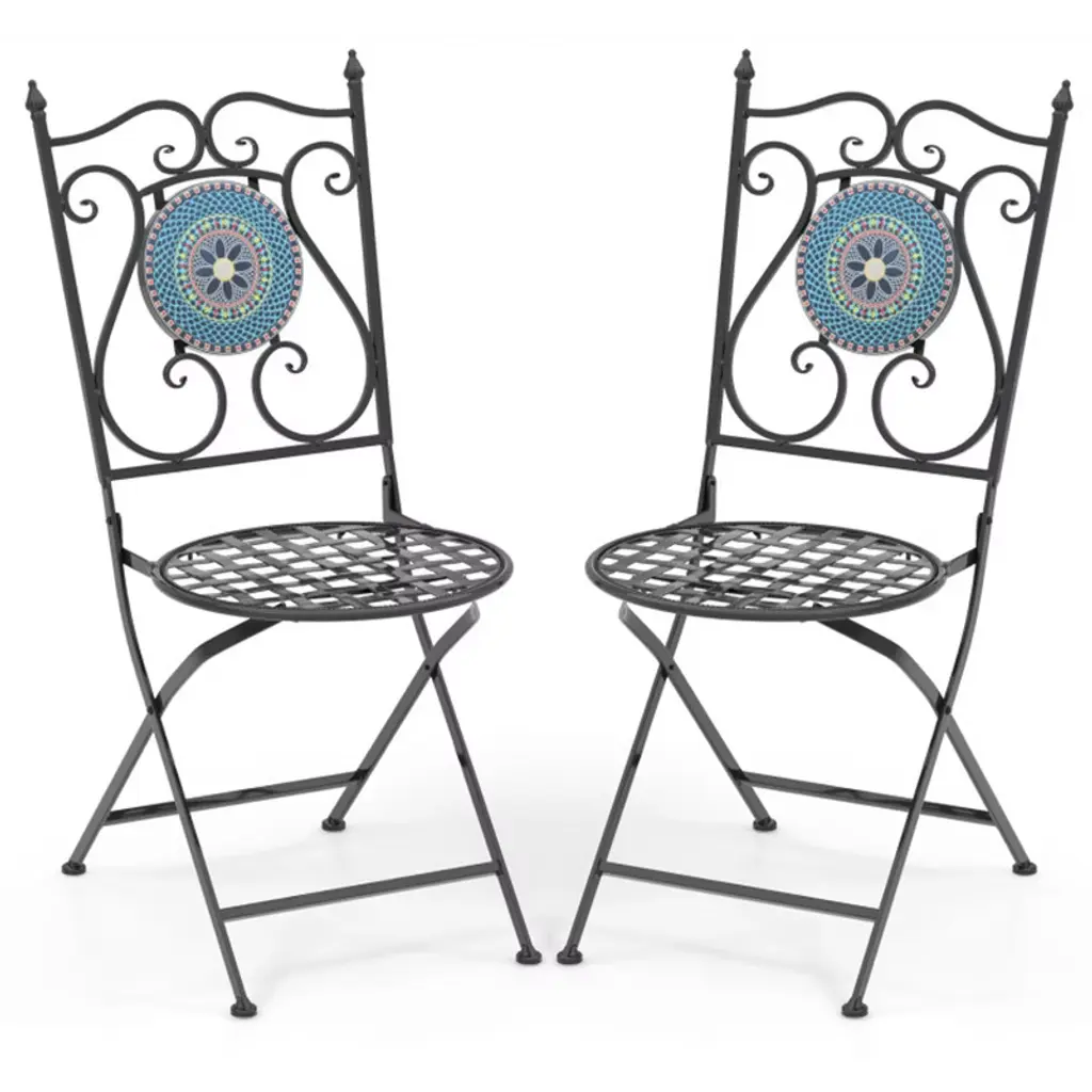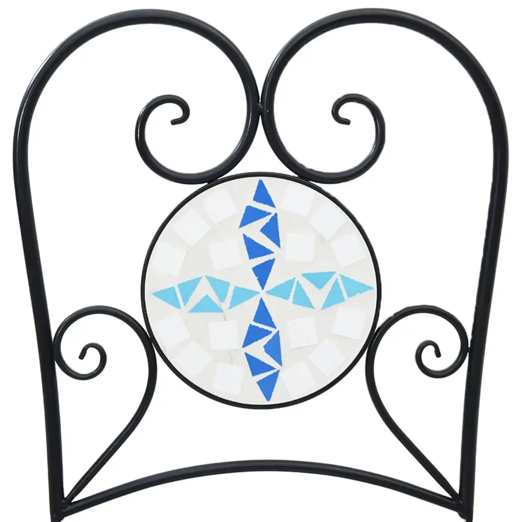 This foldable bistro set, which comes with two elegant chairs, is a stunning addition to your outdoor space. It’s perfect for jazzing up your balcony, patio, or garden area. The bright blue and white ceramic finish really gives off those Mediterranean vibes, making it not just practical but also a stylish decor piece that invites relaxation and enjoyment wherever you put it. Mosaic Design: The geometric pattern on the ceramic surface really brightens up any outdoor space. Weather Resistant: With a sturdy powder-coated iron frame, these chairs can handle a bit of weather, so they’ll last longer and require less upkeep. Portability: The foldable feature makes these chairs easy to carry and store, perfect for events or gatherings. Comfort in Style: Each chair is designed to be comfy enough for long meals or easy chats outside. Easy to Clean: The ceramic's built to be wiped down with ease, helping keep them looking great with minimal effort.