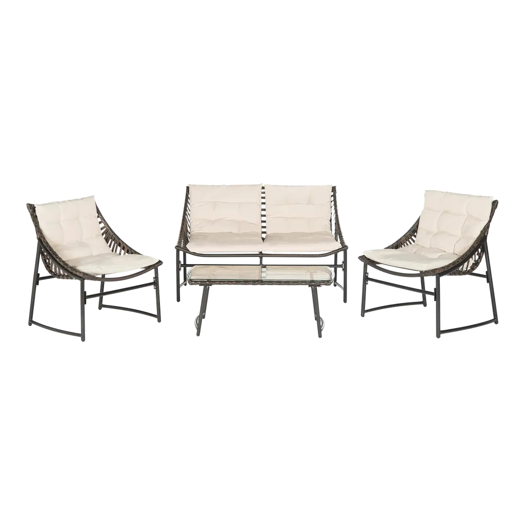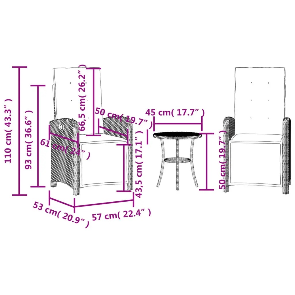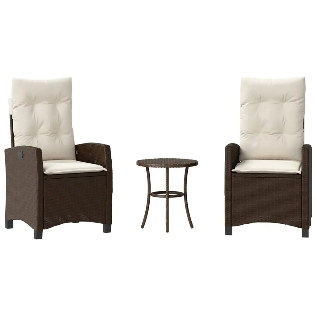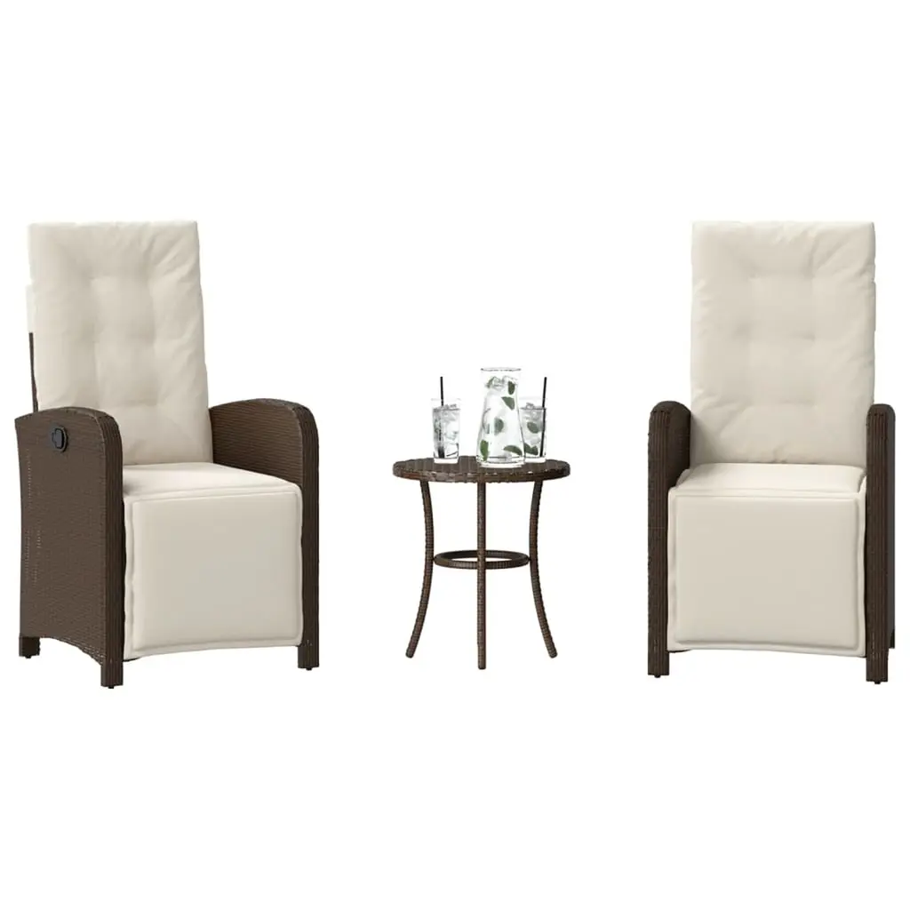 This 3 Piece Bistro Set with Cushions is all about style and functionality, offering a great outdoor lounging experience. Its trendy design has a lovely brown and cream color scheme that fits perfectly in any garden, balcony, or patio, making it the go-to choice for morning coffees or casual get-togethers. The cozy cushions make for a relaxing seat, perfect for long outdoor use.The set includes two adjustable reclining chairs and a round table, making it super flexible for any occasion.Made with UV-resistant poly rattan, this set handles all kinds of weather while keeping its bright look.Removable cushion covers make cleaning easy, ensuring the set stays looking fresh and ready for outdoor fun.The lightweight design helps you easily shift it around different outdoor spots.