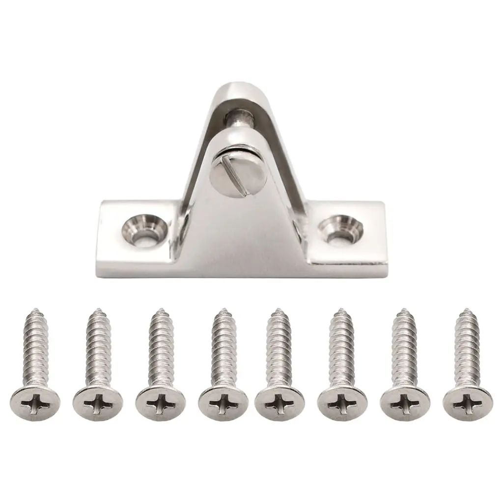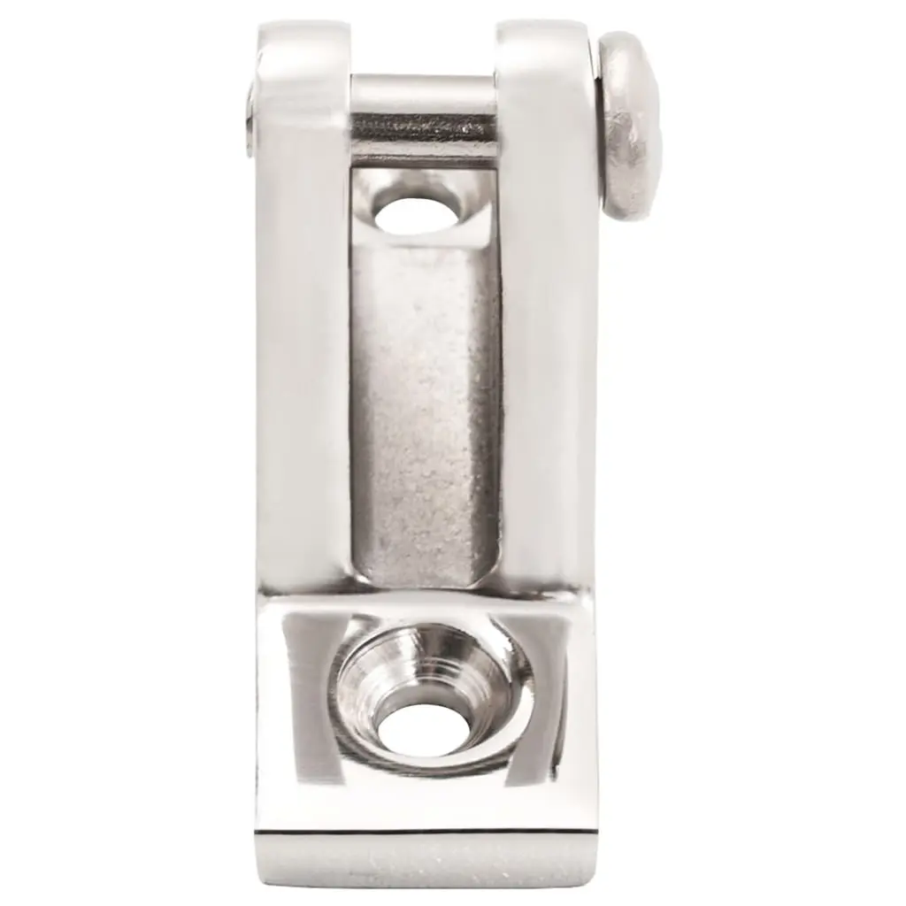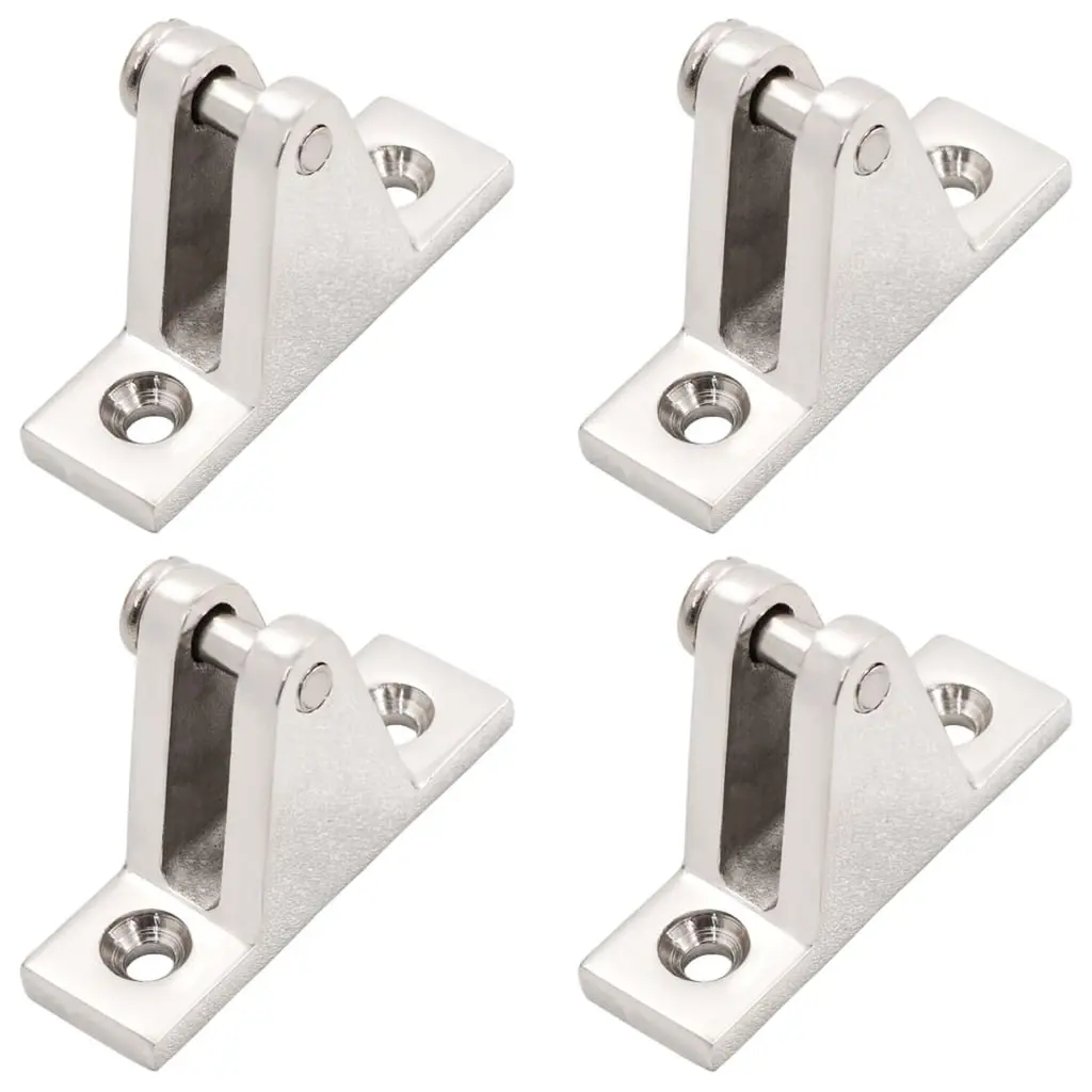 These marine boat deck hinges for bimini top provide maximum durability in saltwater environment.The bimini top deck hinges are made of 316 grade stainless steel of marine quality, which makes them durable even in the harsh conditions. They have a highly polished surface for a sleek appearance to suit modern watercraft. Each deck hinge has a flat base for deck mounting and a stainless steel pin for easy top removal.