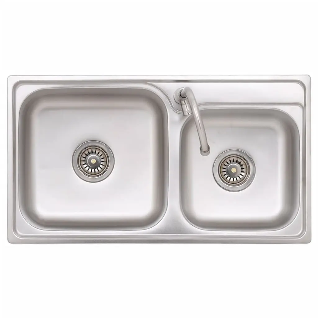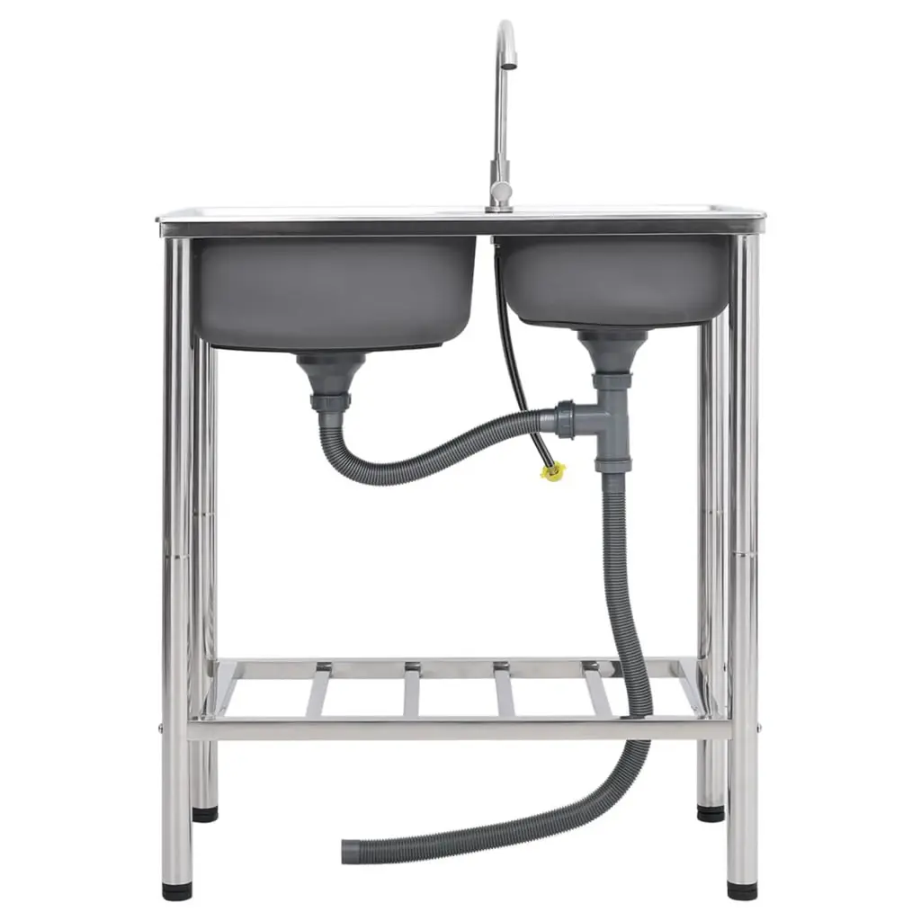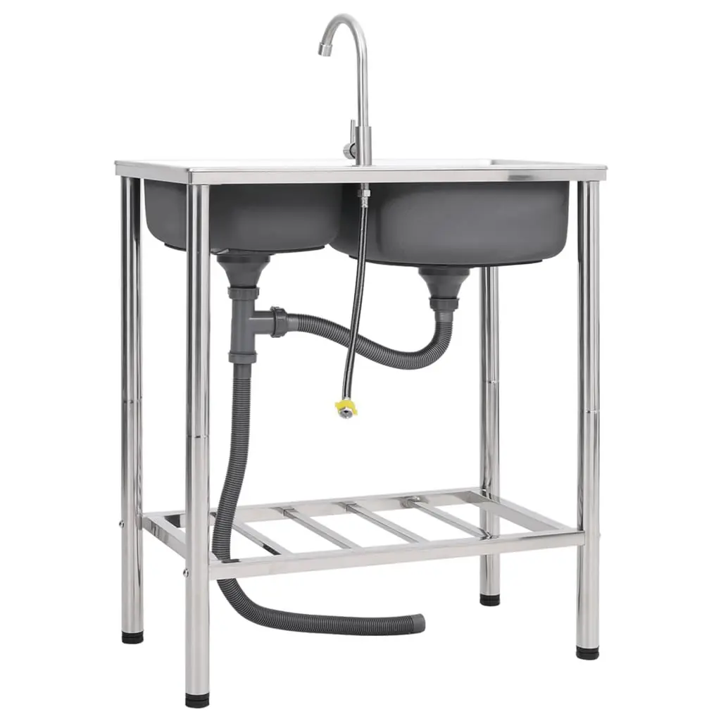Vidaxl Camping Sink Double Basins With Tap Stainless Steel