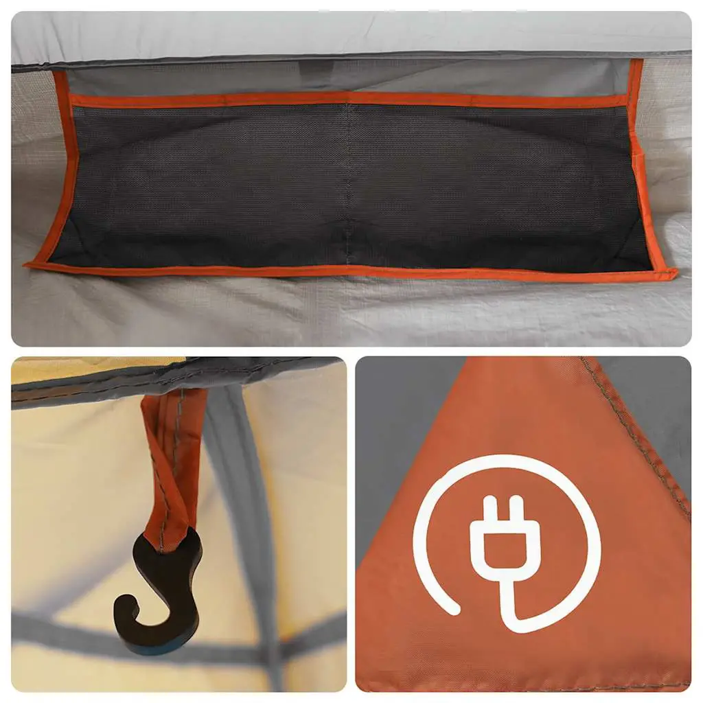 Vidaxl Camping Tent Cabin 4-Person Grey And Orange Waterproof
