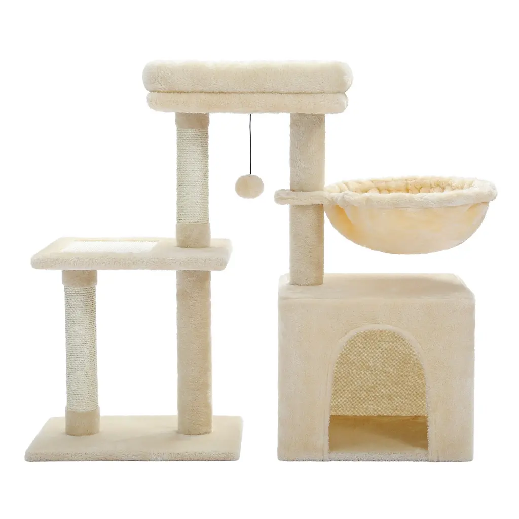 This cat tree is like the ultimate playground for your furry buddy. Built for both fun and relaxation, it comes in a stylish beige that blends into your home decor and offers different levels for climbing and scratching. Strong Build: The strong particle board ensures it lasts long, letting your cat play and scratch without losing stability. Scratch-Proof Surfaces: Keeps your furniture safe as the cat tree has surfaces built to resist scratching. Nice Design: With a modern look and subtle shades, this cat tree spruces up your living area. Multi-Use: Use it as a scratcher or a nice resting spot, catering to your cat's natural instincts. Easy to Clean: Keeping it fresh is a breeze; just wipe it down with a damp cloth!