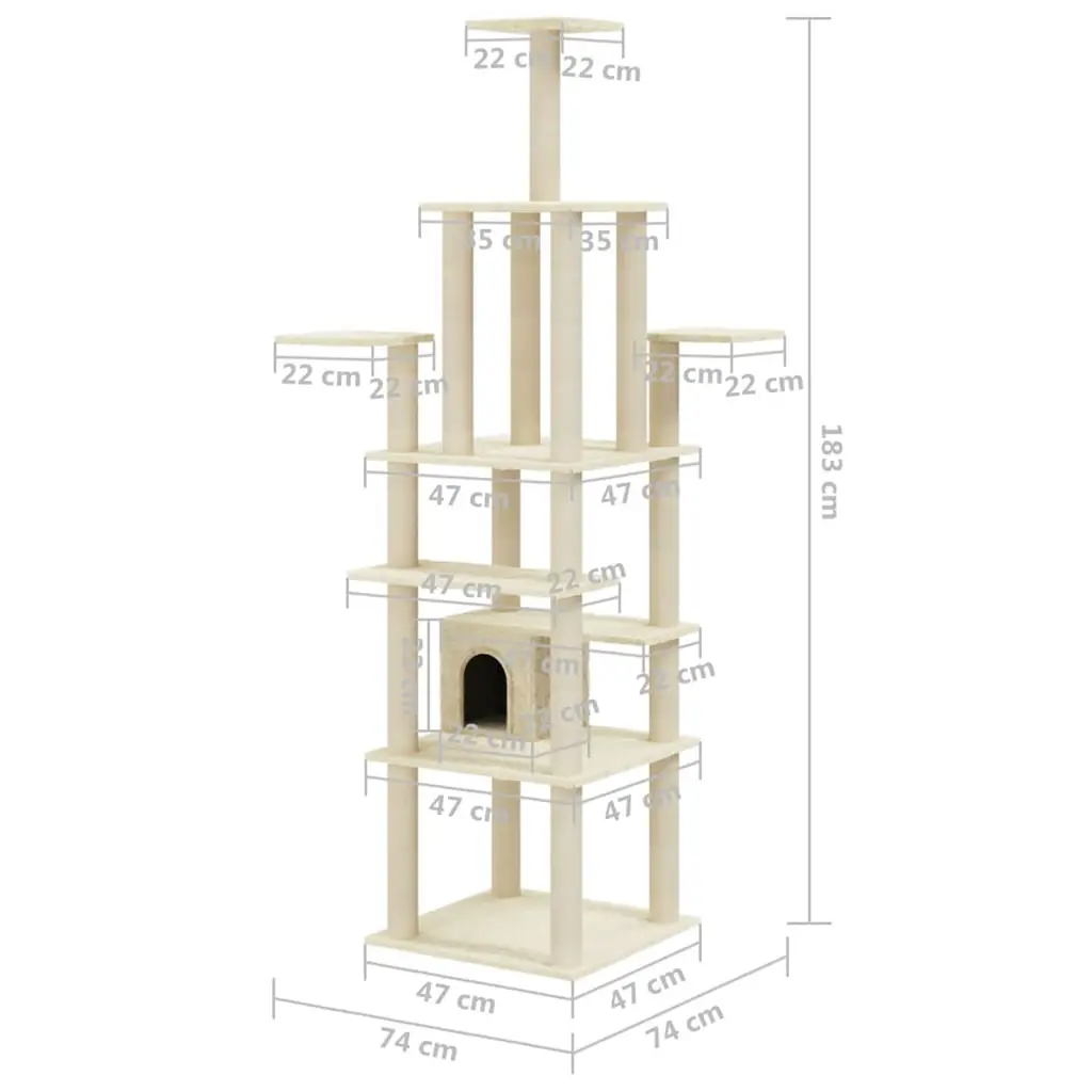 Vidaxl Cat Tree Cream Engineered Wood, Plush, Sisal Large Cat Tree