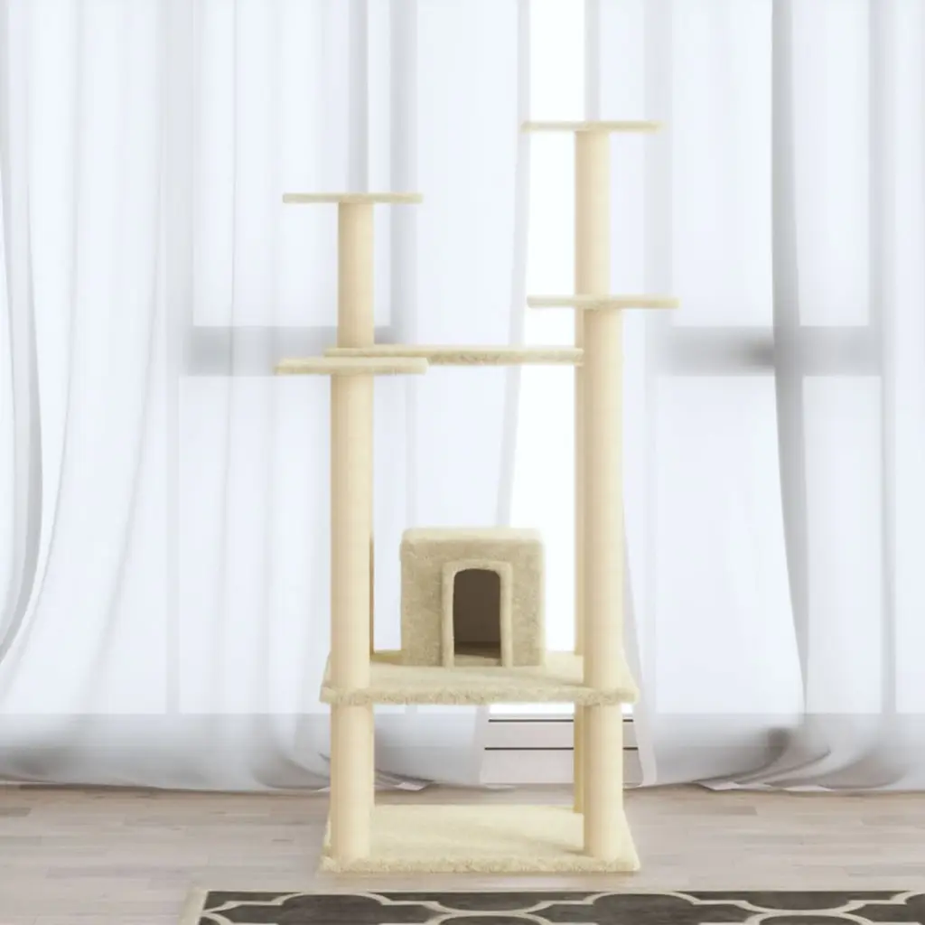 Vidaxl Cat Tree Cream Engineered Wood, Plush, Sisal Medium Durable