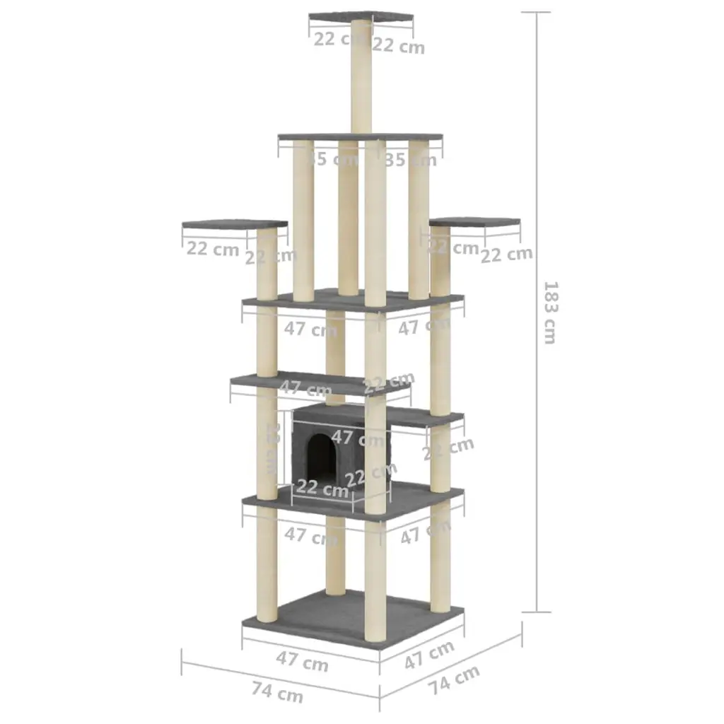 Vidaxl Cat Tree Dark Grey Engineered Wood, Plush, Sisal Large
