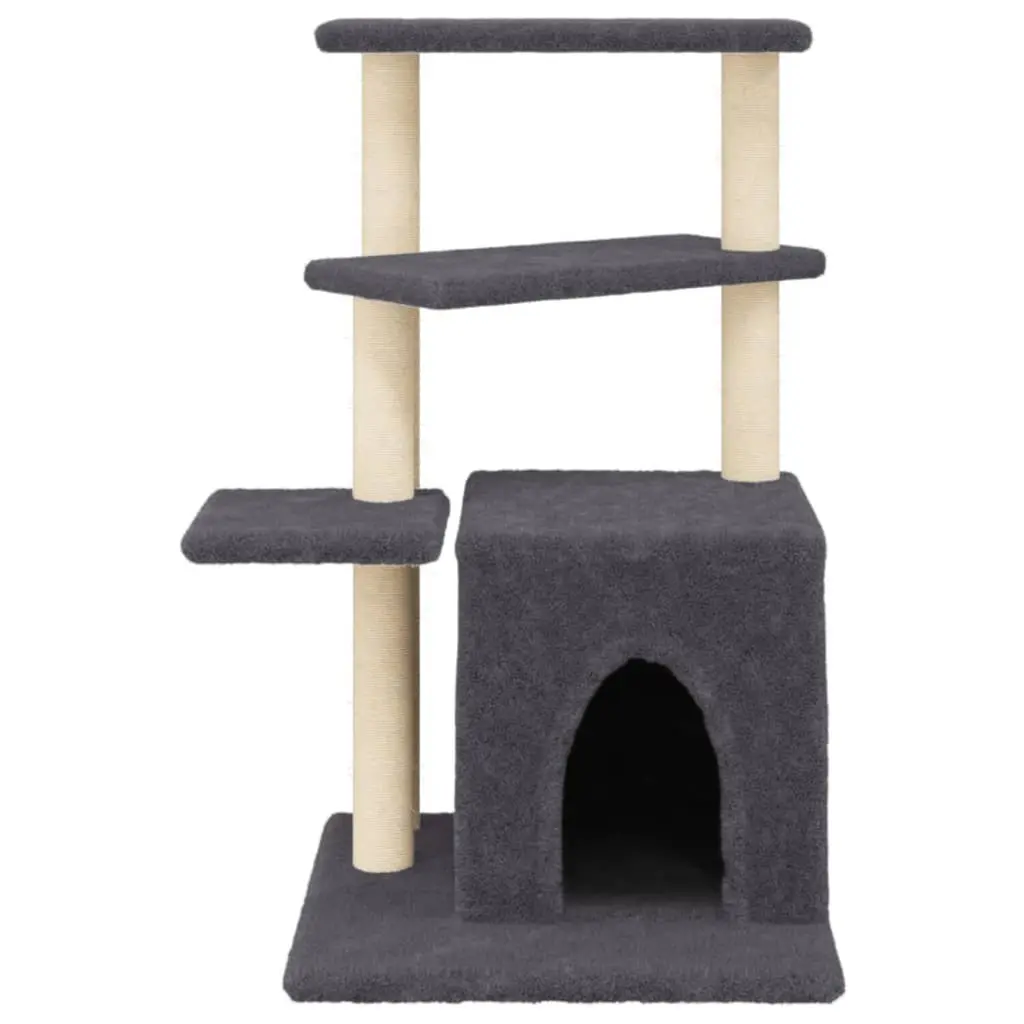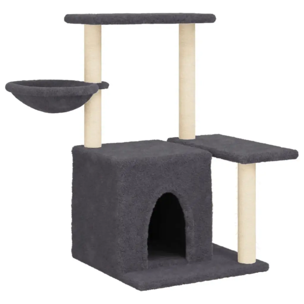 Vidaxl Cat Tree Dark Grey Engineered Wood, Plush, Sisal Medium Cat Tree