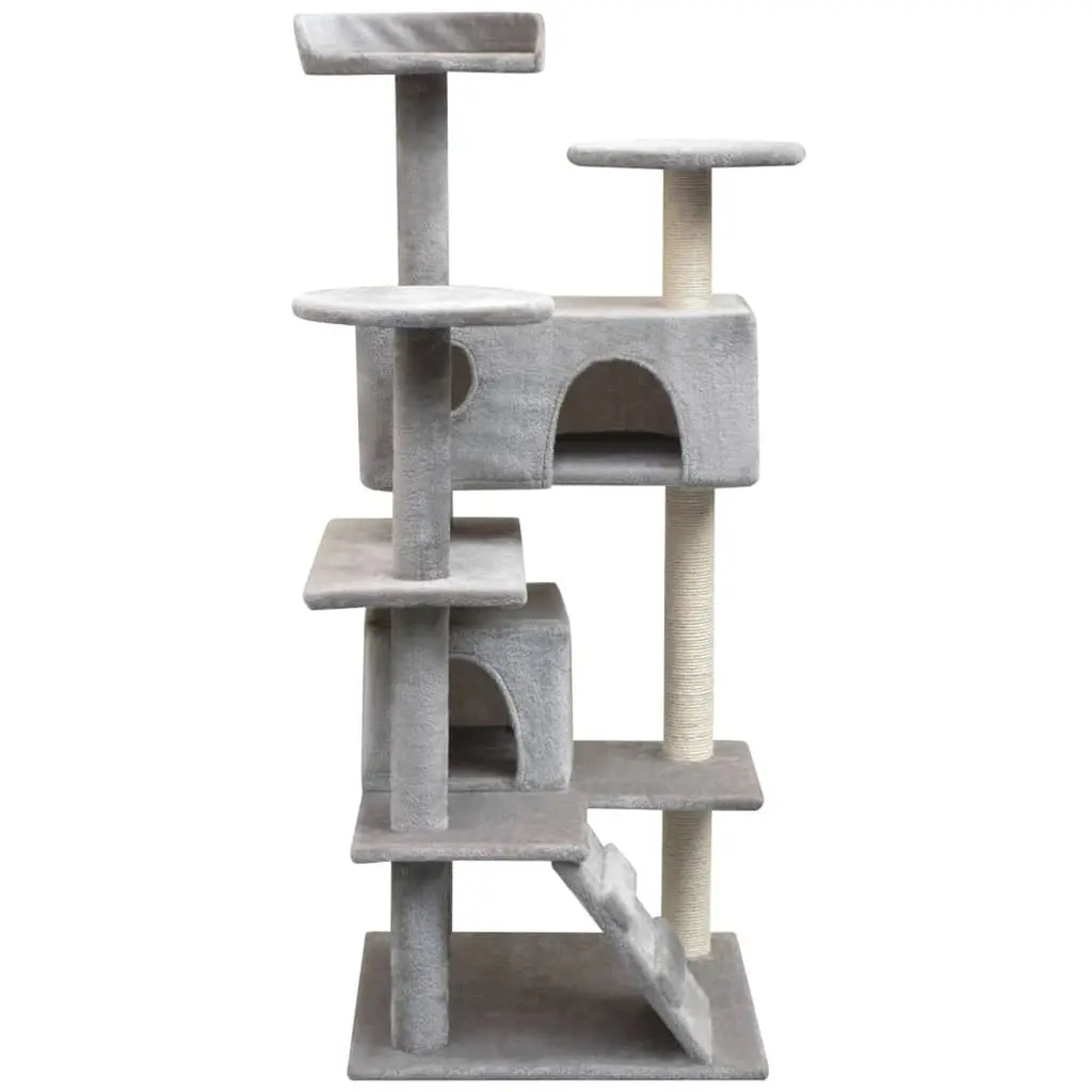 Vidaxl Cat Tree Grey Wooden Frame, Sisal Rope, Plush Fabric Medium