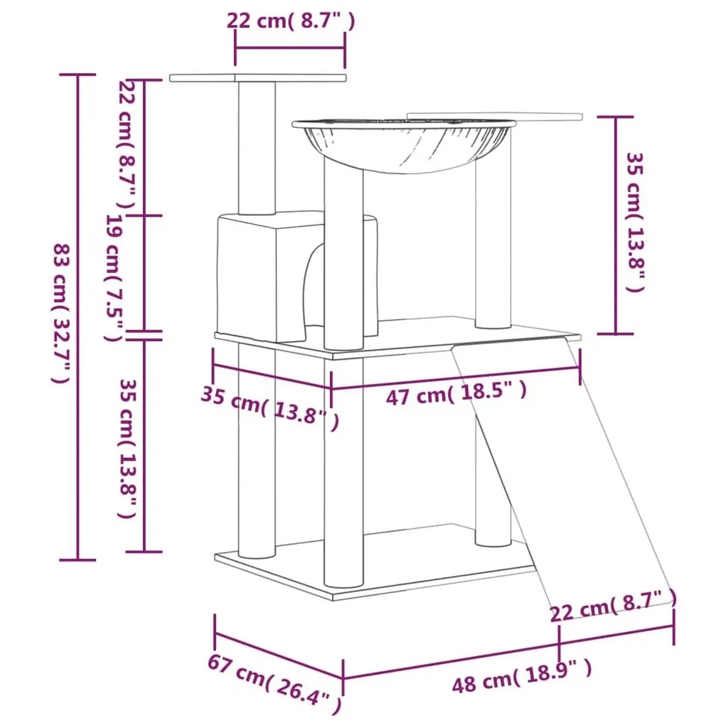 This modern cat tree stands at 32.7 inches tall and has a great design that appeals to both cats and their owners. The light gray color and clean lines fit nicely into your living room or bedroom, creating a comfy space for your cats to hang out and explore. Multi-Level Exploration: This cat tree has a cool multi-level design with lots of heights for your pet to climb and play. Your feline friends will love jumping around on the platforms, perfect for their natural instincts.Durable Construction: Made from quality engineered wood, this cat tree is strong enough for all the jumping and scratching your pets can do while still looking stylish.Soft Plush Surface: The plush materials make for a snug and inviting spot for your cat to chill and soak up the sun after a day of fun.Scratch-Resistant Finish: The scratch-resistant surfaces help protect your furniture from claw marks, making it a great option for cat-loving homes.Ideal Indoor Use: Designed just for indoors, this cat tree is perfect for adding some fun while letting your pet climb and scratch. Whether in the living room or bedroom, it’ll keep your cats entertained.