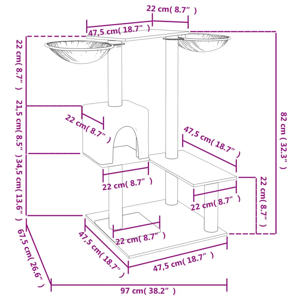 This light grey cat tree is a dream playground for your furry pals, with a fantastic design that perfectly blends practical use with style. Made from high-quality engineered wood, plush fabric, and sisal for scratching posts, it offers a lovely space for climbing, scratching, and lounging. Durable Construction: This cat tree is built to last against the playful antics of adult cats, ensuring lasting fun. Its sturdy design means it won’t easily topple, creating a safe environment for your cat to explore.Scratch-Resistant Surfaces: The materials used protect against scratching damage, keeping your furniture safe. Your cat can scratch to their heart's content without trashing your home.Soft Plush & Natural Sisal: Offering cozy spots for your pet, the plush fabric creates comfy lounging areas, while sisal posts encourage good scratching habits, promoting a healthy lifestyle for your cats.Multiple Platforms & Baskets: With different levels to explore, this cat tree promotes exercise and mental stimulation, helping your cat stay fit and happy.Flexible Usage: Perfect for any room in your home, including living rooms or bedrooms, this stylish cat tree boosts your decor while providing comfort and excitement for your pet.