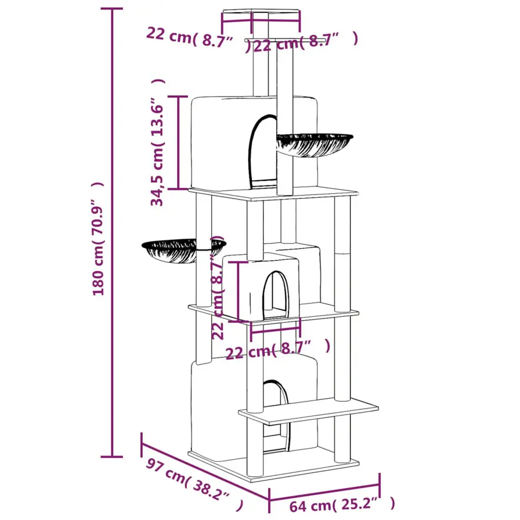 This modern cat tree offers a stylish yet functional space for your feline friends to play, relax, and scratch. With its light grey plush finish and engineered wood construction, it seamlessly fits into any living space while providing multiple areas for cats to explore and enjoy. Multi-level design with houses and platforms for diverse activities.Durable construction using high-quality materials ensures safe play.Interactive features engage cats in fun and stimulating ways.Scratch-resistant surface protects your furniture.Ample storage is ideal for toys and keeps the area organized.