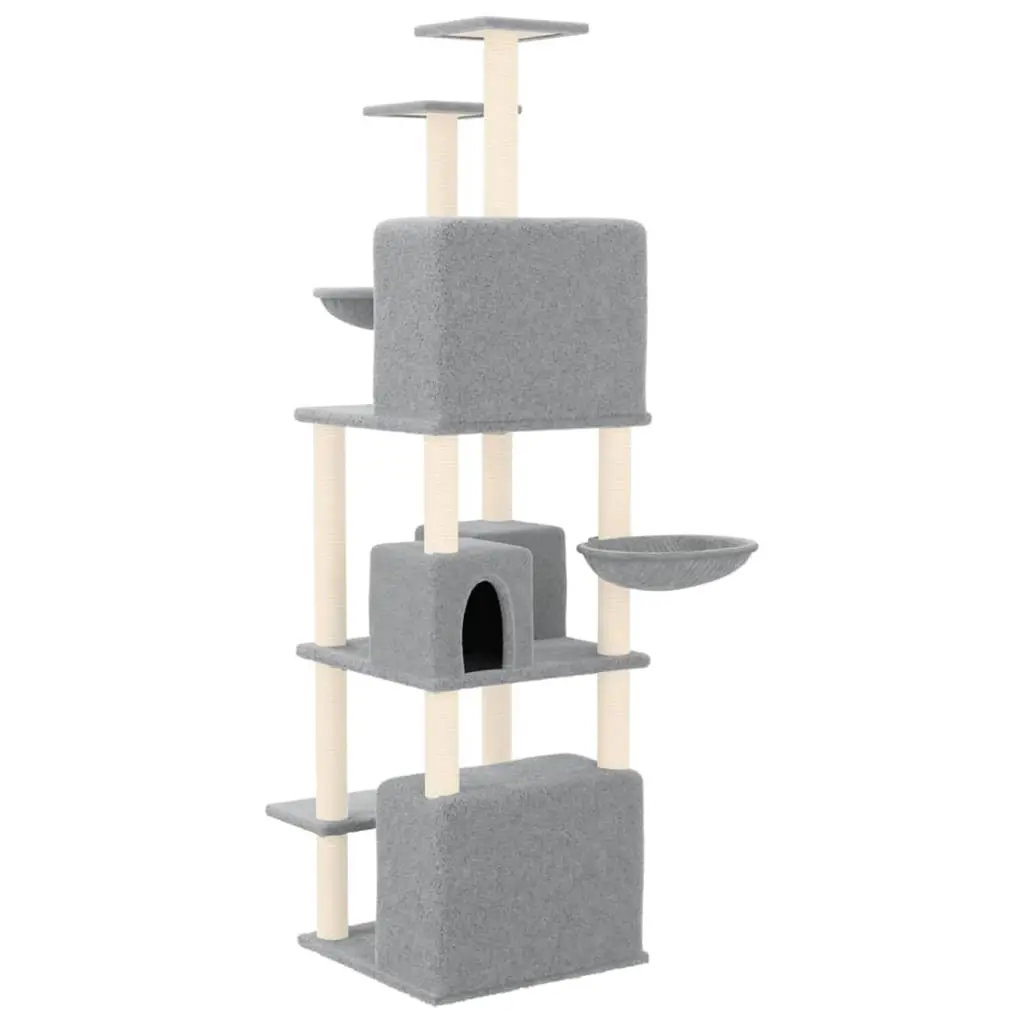 Vidaxl Cat Tree Light Grey Engineered Wood 70.9 In Adjustable Armrests