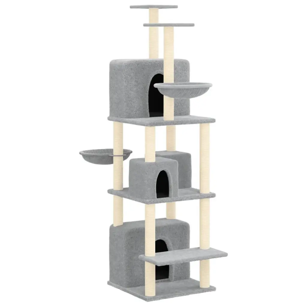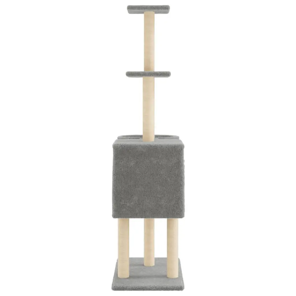 Vidaxl Cat Tree Light Grey Engineered Wood, Plush, Sisal 57.1 In Tall