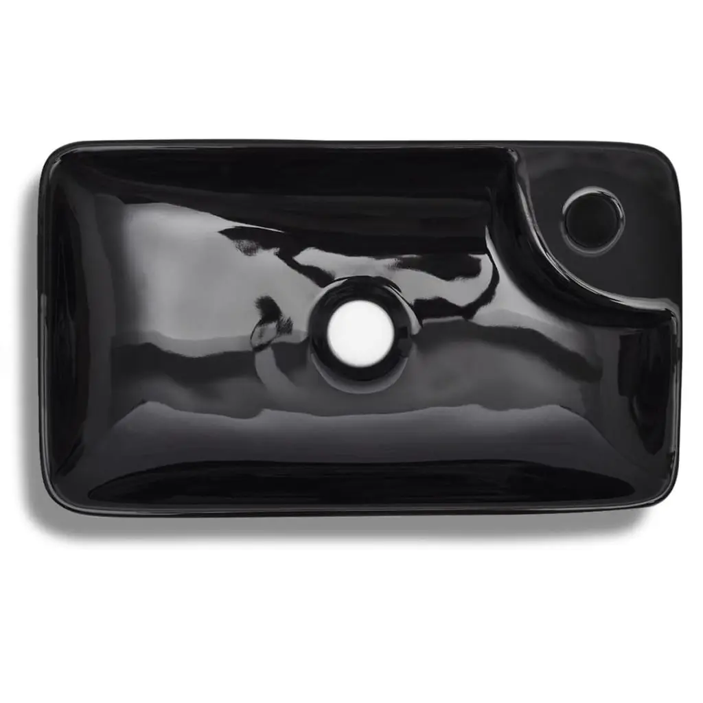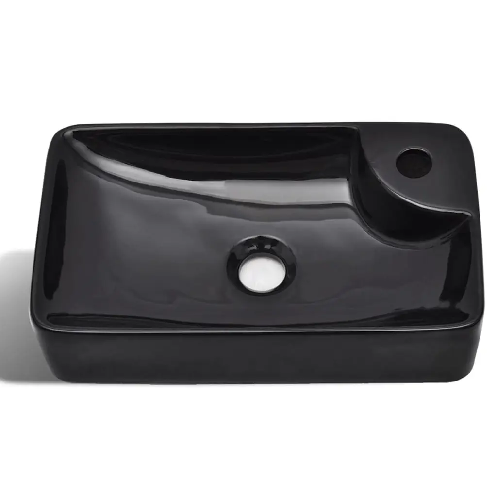 Vidaxl Ceramic Bathroom Sink Basin With Faucet Hole Black