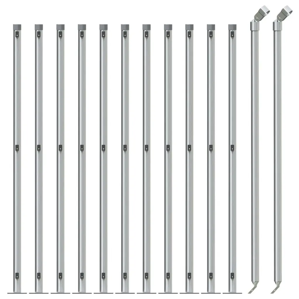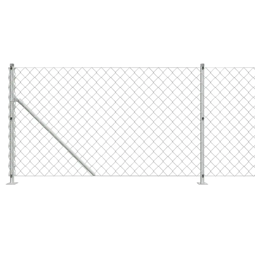 This versatile chain link fence with floor flange is ideal for creating a secure, long-lasting barrier around your property. It can also be used to erect an animal enclosure.Durable material: Steel is an exceptionally hard and strong material. It offers sturdiness and stability. Galvanization is useful for products that'll be used outdoors as well as in harsh environments.Flanged post included: This wire mesh fence comes with 11 straight posts with floor flange, 2 strut posts, and mounting accessories to secure it firmly into the ground.Interlocking design: The interlocking design makes this cyclone fence not only flexible but incredibly durable and difficult to break. You can also cut it to the size you desire.
