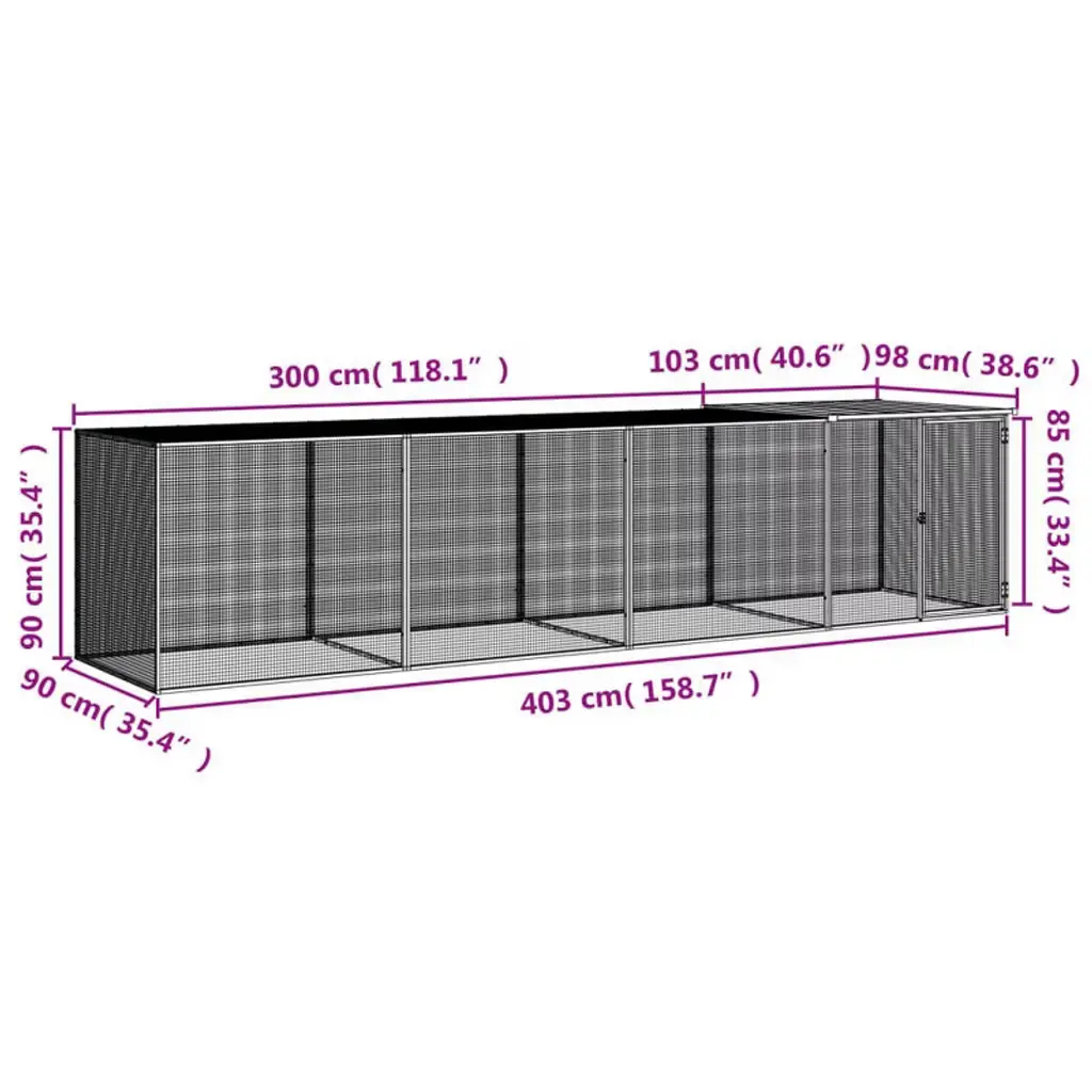 This chicken cage offers a safe and spacious area for your birds to roam freely. Made from galvanized steel, it’s got an industrial vibe that looks cool and lasts outdoors.Specifications:Color: Light GrayShape: RectangularMaterial: Metal SteelFinish: Powder-CoatedIndoor/Outdoor: Outdoor OnlyCover Included: NoRoom: OtherDimensions: 38.6 x 158.7 x 34.3 in (W x L x H)Brand: vidaXLDelivery Contains: 1 x Chicken cageAssembly Required: YesRecommended Number of People for Assembly: 2SKU: 3189045EAN: 8720845916602