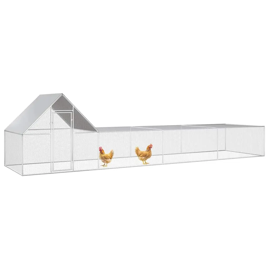 Vidaxl Chicken Coop Silver Galvanized Steel 26x6.5x6.5 Feet Durable