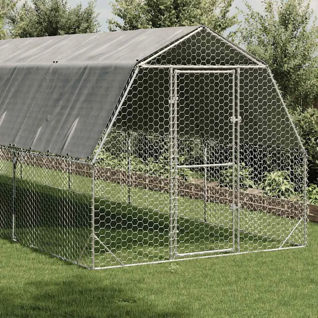 Vidaxl Chicken Run Galvanized Steel Galvanized Steel, Polyethylene Large