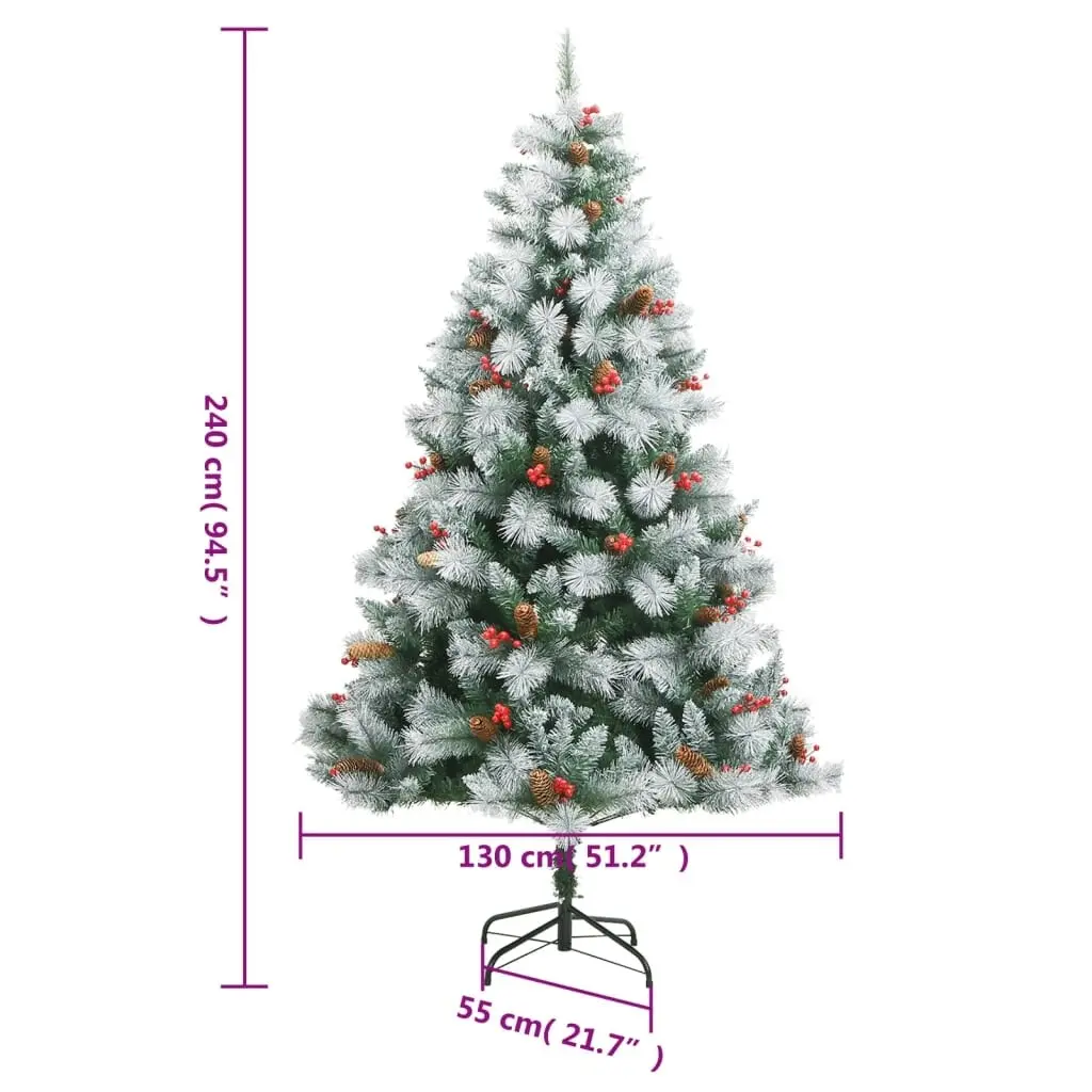 Vidaxl Christmas Tree Artificial Hinged Christmas Tree With Cones And Berries - 8 Foot - Green And White