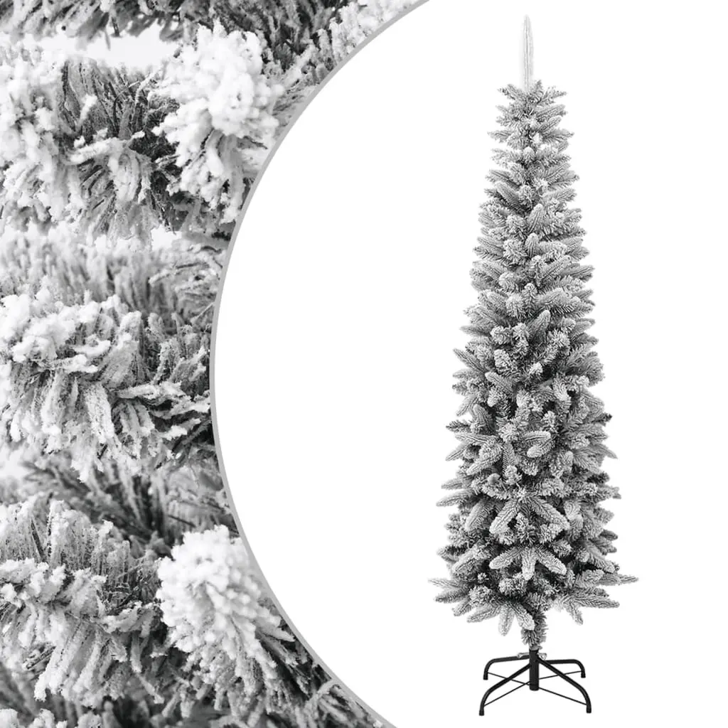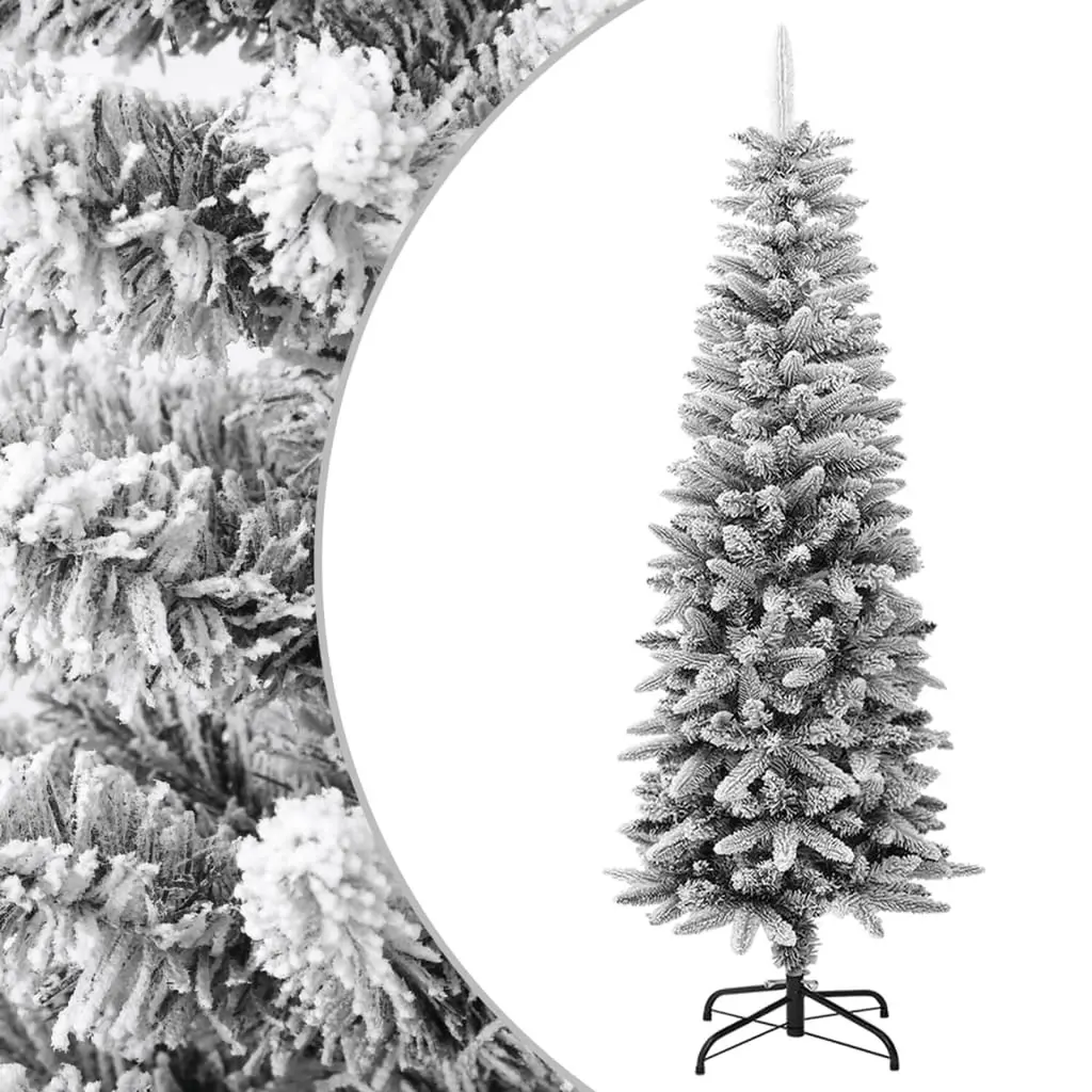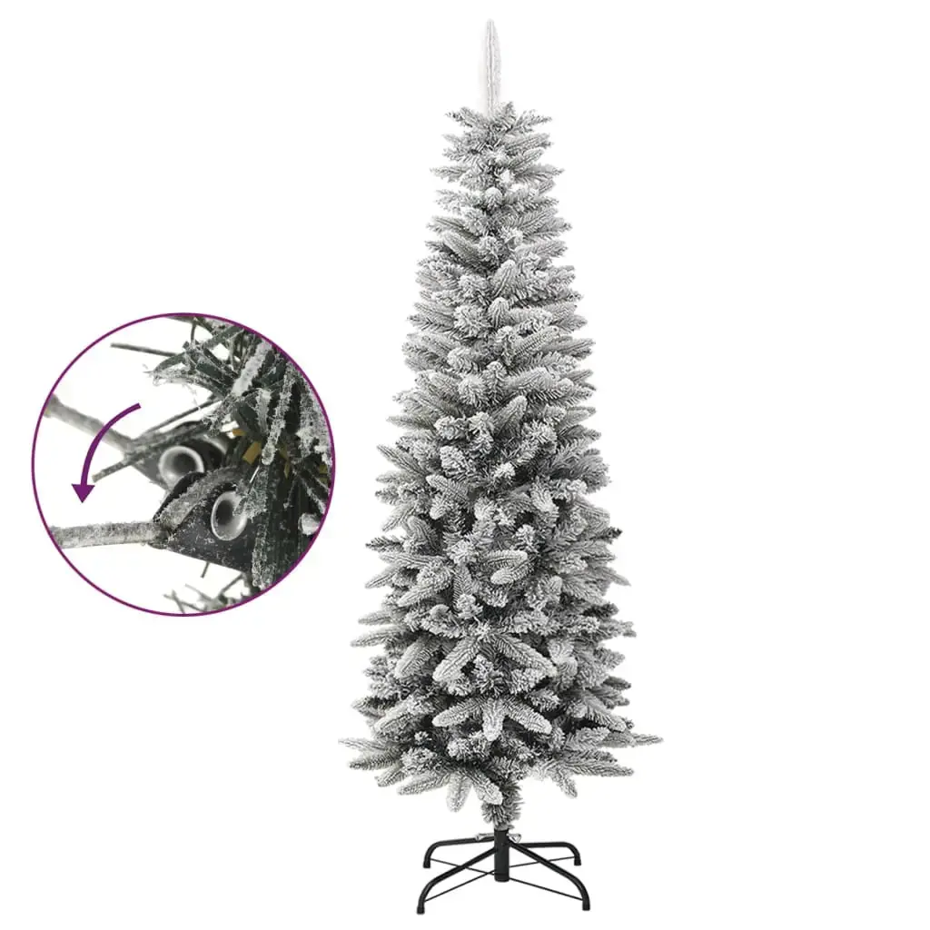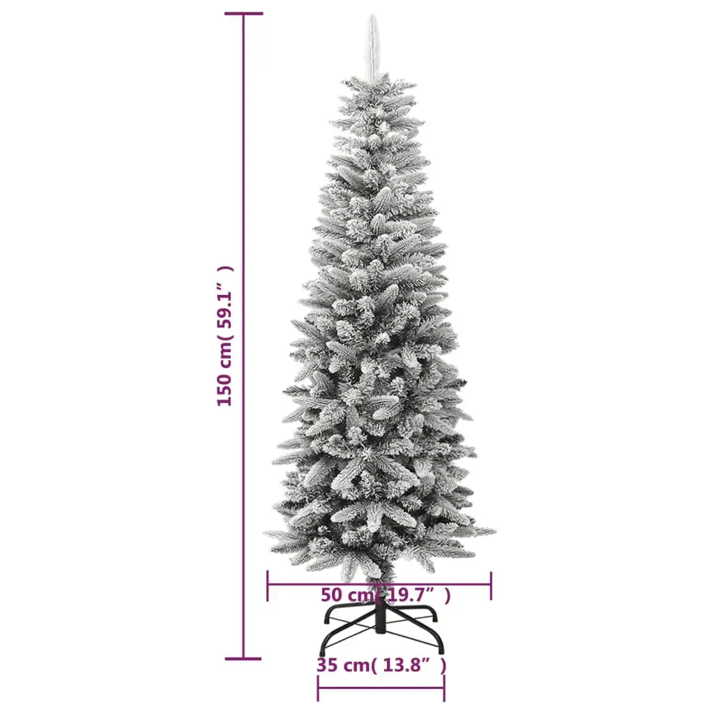 Vidaxl Christmas Tree Slim Artificial Xmas Tree With Flocked Snow Pvc And Pe - 5 Foot