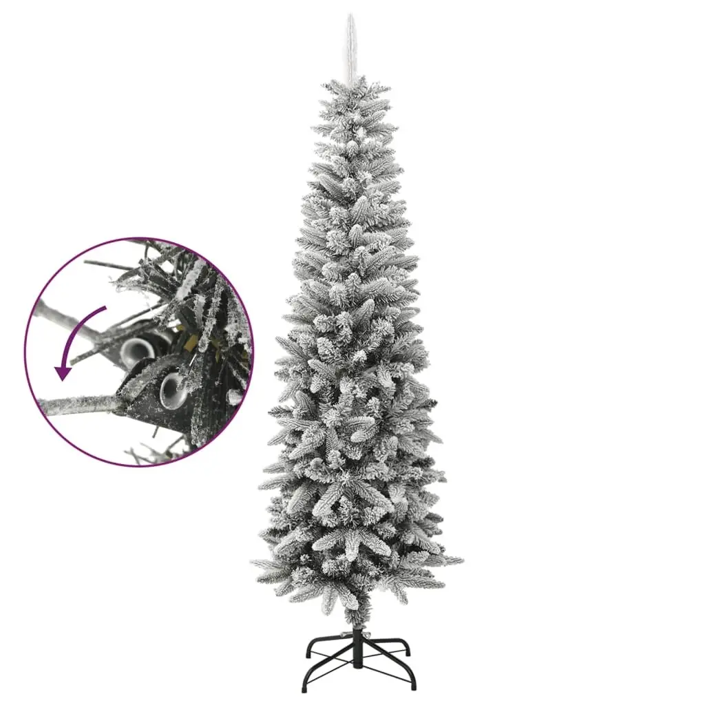 Vidaxl Christmas Tree Slim Artificial Xmas Tree With Flocked Snow Pvc And Pe - 6 Foot
