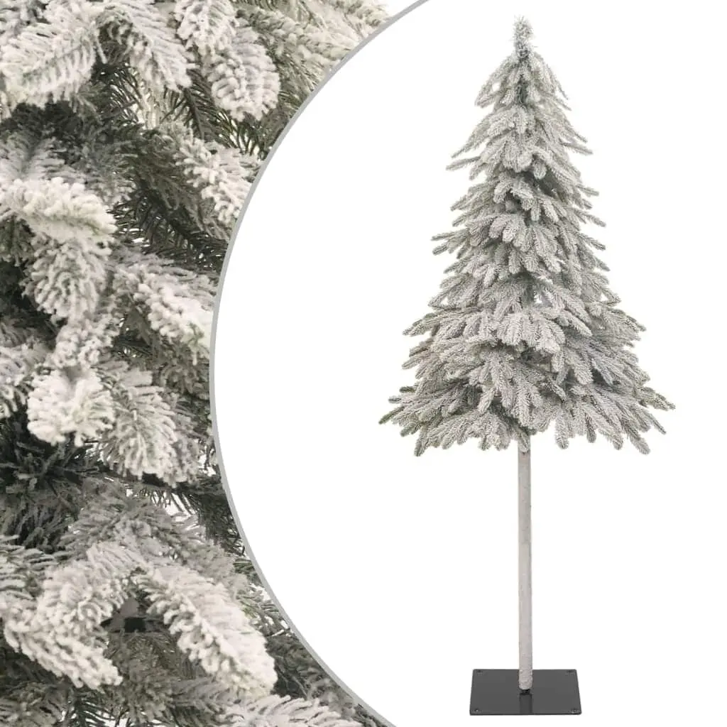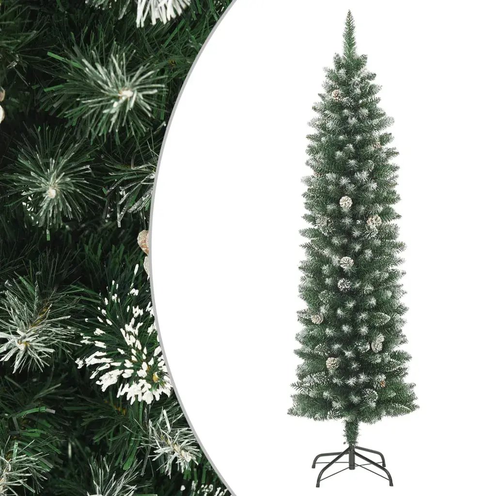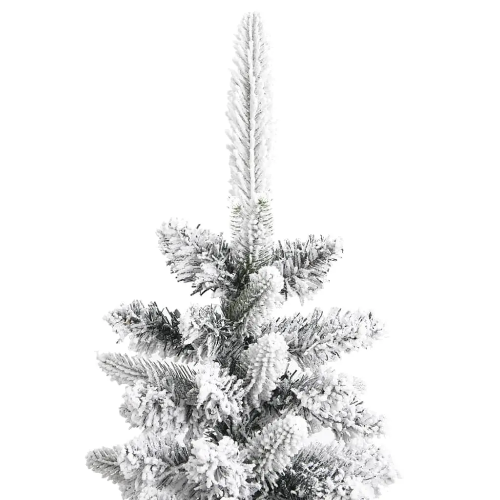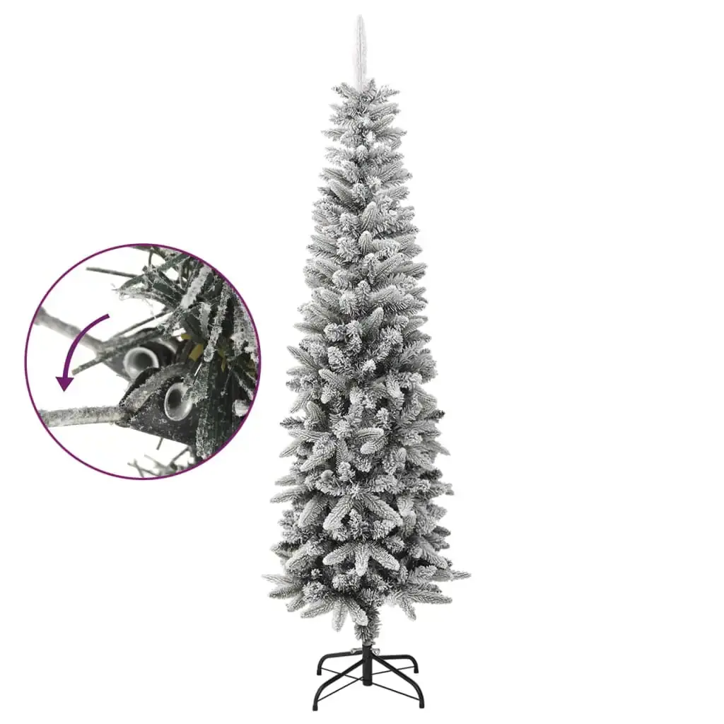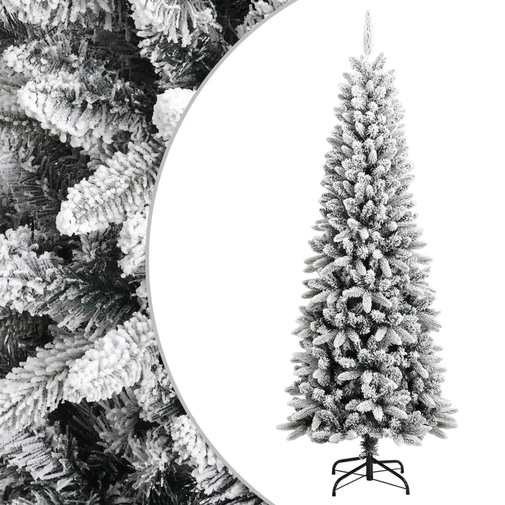 Vidaxl Christmas Tree Slim Artificial Xmas Tree With Flocked Snow Pvc And Pe - 7 Foot