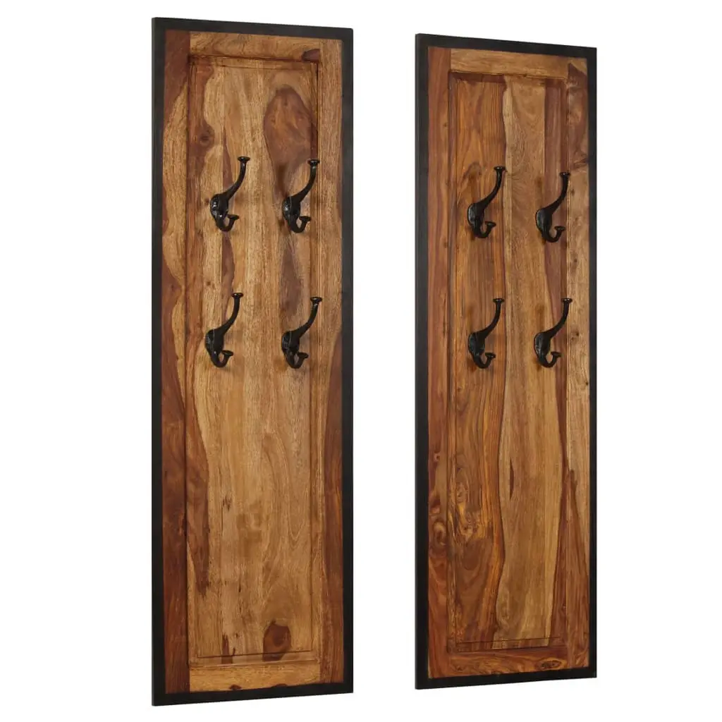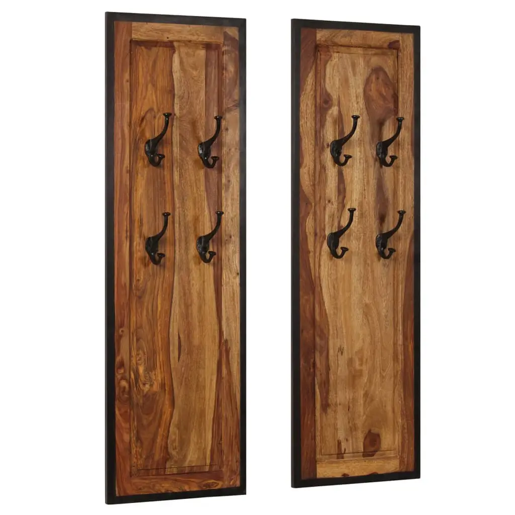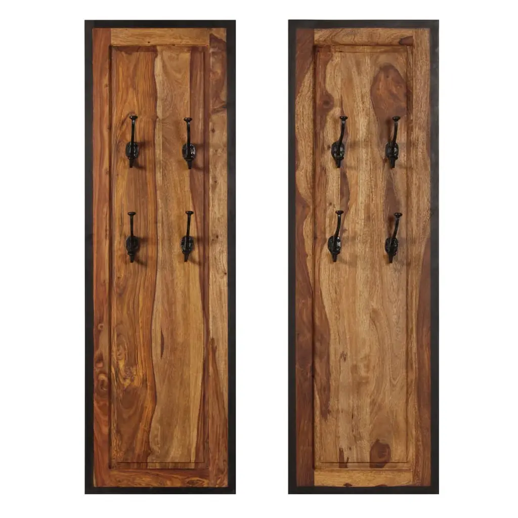 This set of two coat racks is not just for storage; it’s also a stylish touch for any hallway, foyer, or living room. Made from solid Wood, the racks showcase a beautiful natural grain pattern that adds warmth and charm to your home, perfect for those who appreciate a bit of style in their decor. Smart Design: The retro vibe of these coat racks brings a nostalgic feel to modern spaces. Each piece beautifully showcases its grain patterns, making it a standout in any entryway.Sturdy Hooks: With eight hooks total, this set is perfect for organizing coats, bags, and accessories, keeping everything neat while making it easy to grab your most-used items.Solid Build: Made from solid Wood, these racks are built to last. The polished finish not only adds to durability but also maintains a natural look.Space-Saver: Designed for wall mounting, these racks free up valuable floor space—ideal for smaller homes or areas where maximizing space is essential.Easy Care: Simply wipe with a dry cloth to keep the wood looking great—no harsh cleaners or chemicals are needed.
