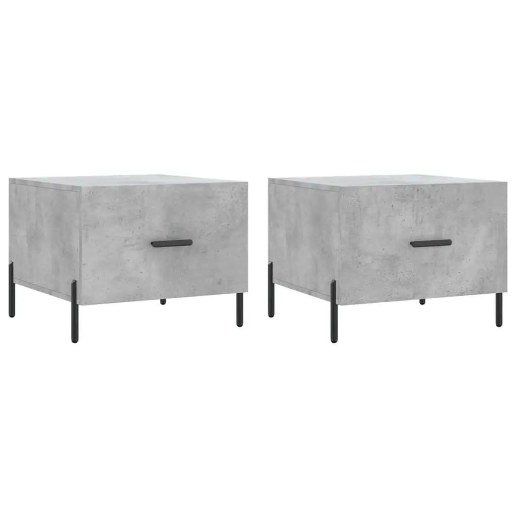 This set of coffee tables boasts a contemporary design, spot on for modern living spaces. With their strong build and stylish concrete gray finish, these tables are great for serving coffee or displaying decorative bits in any living room or office. Ample Storage: Each coffee table features a spacious drawer, perfect for tucking away magazines or remotes, keeping your living space organized.Modern Design: The smooth shapes and sleek silhouette of these tables add a stylish touch to your home, making them a fab addition to any room.Sturdy Materials: Built from high-quality engineered wood, supported by durable iron legs, these tables are made for daily use and can stand the test of time.Versatile Use: Perfect for different settings, from casual get-togethers to formal events, these coffee tables can serve drinks, snacks, or showcase decorations.Easy Maintenance: The matte finish not only looks fab but is a breeze to clean. Just a quick wipe with a damp cloth will keep them looking great.