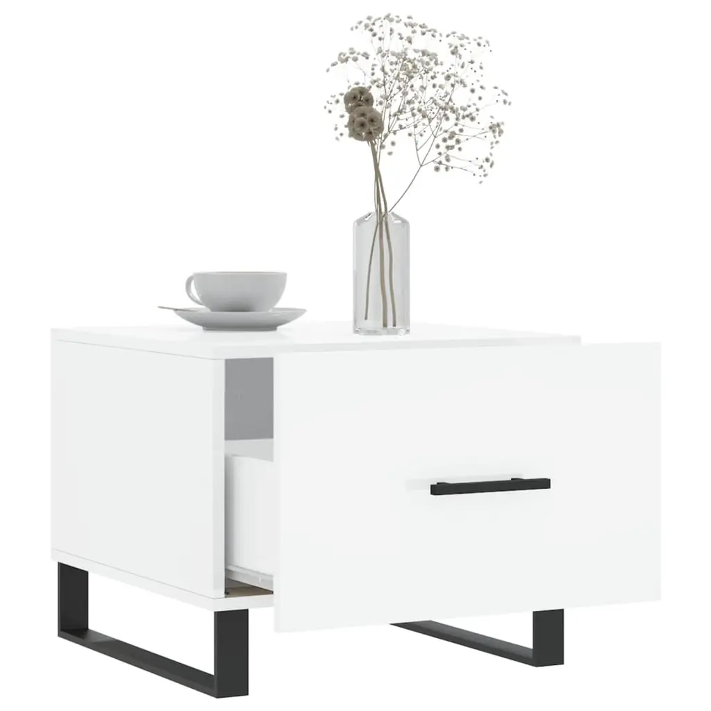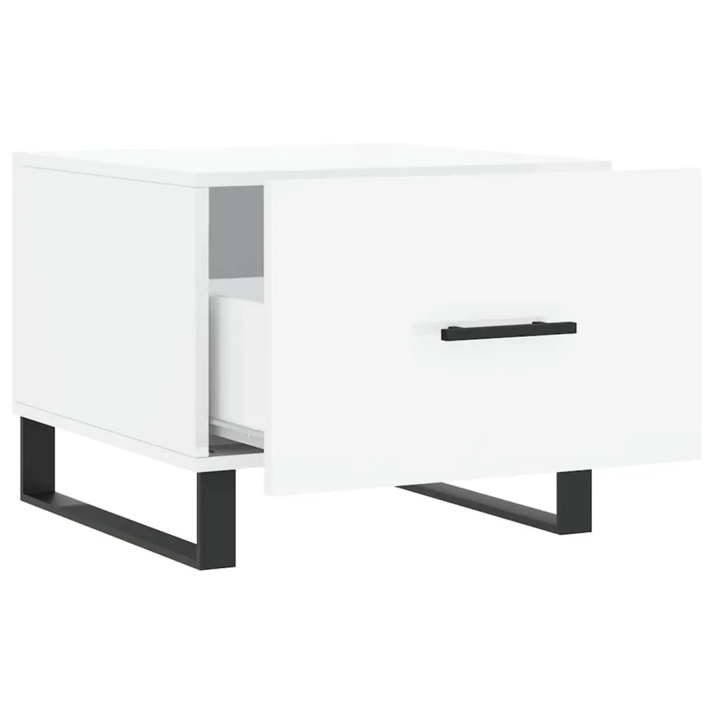 This modern coffee table set really brings style with its lovely high gloss white finish, adding a touch of class to your living room. With clean lines and a trendy shape, these tables aren't just for drinks; they elevate your home decor, too. Striking Appearance: The glossy white surface makes any room feel bigger and brighter. Handy Storage Drawer: The built-in drawer is perfect for hiding away remotes and magazines to keep everything nice and tidy. Robust Construction: Built from engineered wood and iron legs, these coffee tables are solid and built to last. Space-Saving Design: Each table measures 19.7 in wide and long, so they're great for tight spots without giving up on style. Indoor Use: This fab coffee table set is for indoor spaces, perfect for your living room, waiting areas, or office break rooms.