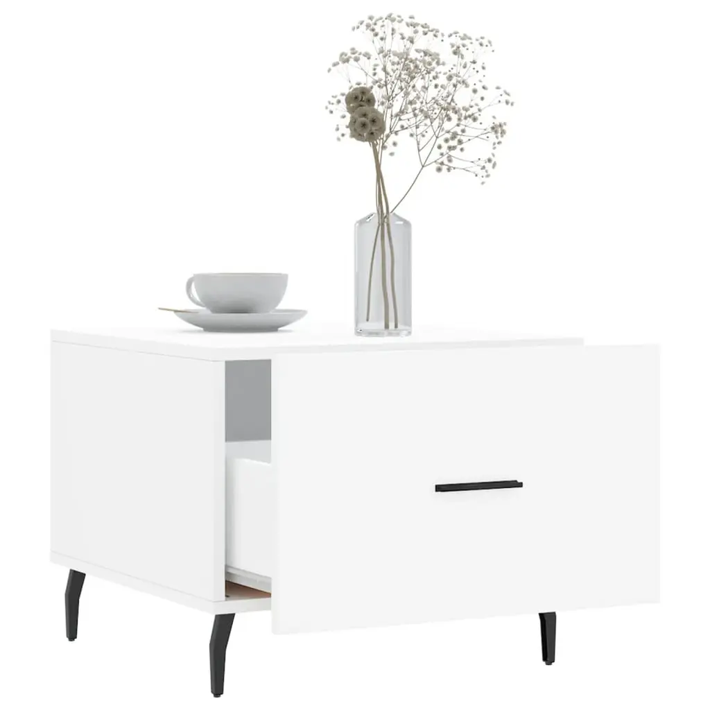 This coffee table set stylishly updates your living area with modern flair and flexibility for a range of uses. Finished in a striking white, the tables offer both style and utility, easily blending into any decor while providing useful surfaces for coffee, books, or decorative items. Ample Storage: With a roomy drawer, this coffee table set makes it easy to keep your magazines, remotes, and other living room necessities tidy and neat. Modern Style: The clean lines and chic white color give a contemporary feel, making it a great fit for any home decor, from minimalist to stylish. Quality Construction: Made from sturdy engineered wood and iron, this coffee table is built to last, ensuring top performance for years. Functional Dimensions: Each table measures 19.7 in x 19.7 in, providing a great surface size that fits well in any room without feeling crowded. Easy Maintenance: The smooth surface makes cleaning a breeze, letting you keep it looking sharp with just a simple wipe down, perfect for busy households.