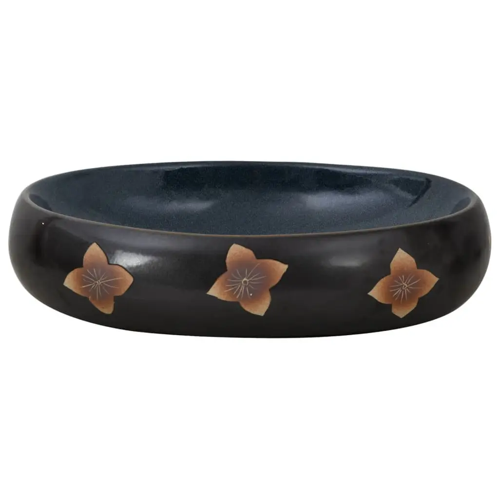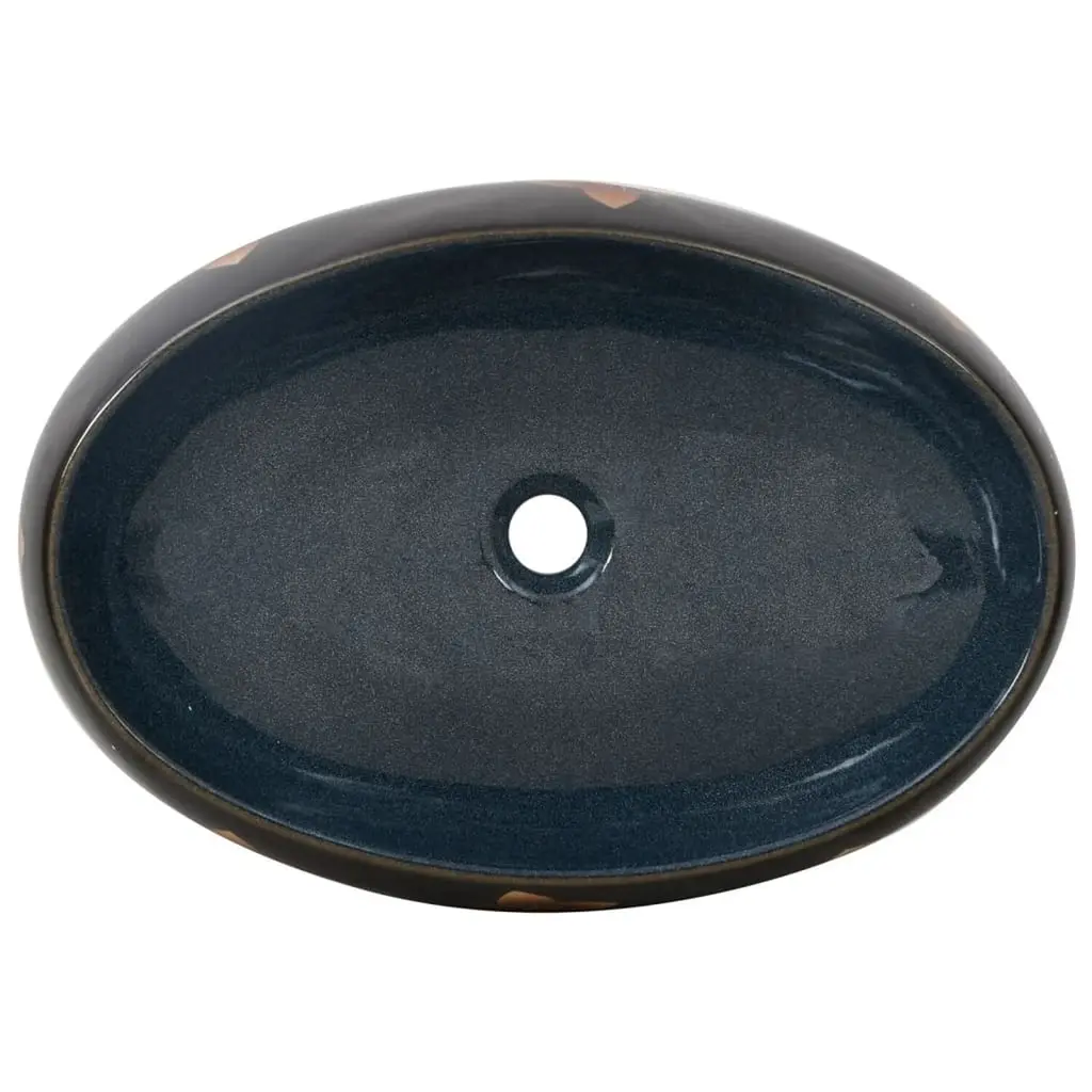 Vidaxl Countertop Basin Black And Blue Oval 23.2x15.7x5.9" Ceramic