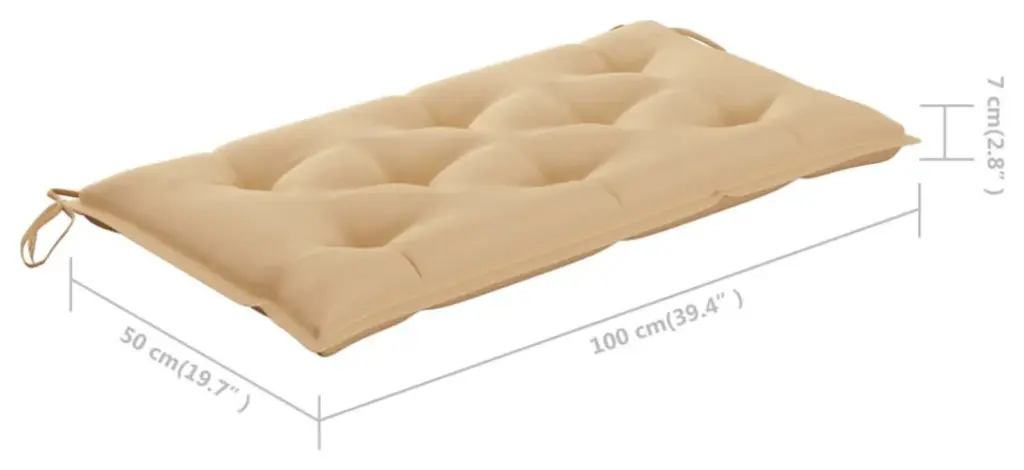 vidaXL Cushion for Swing Chair Beige 39.4" FabricThis cushion is designed for adding a layer of comfort to your outdoor swing chair or hammock. This cushion is stuffed with soft polyester filling for ultra-soft and long-lasting supporting. It is also weather-resistant for super durability. The quality stitching on both edges of the cushion ensures its years of service!Color: BeigeMaterial: Oxford fabric (100% polyester)Back cushion size: 39.4" x 19.7" (L x W)Seat cushion size: 39.4" x 19.7" (L x W)Cushion Thickness: 2.8"Includes 4 sets of ropesDelivery contains:1 x Back cushion1 x Seat cushionColor: BeigeSize: 39.4"