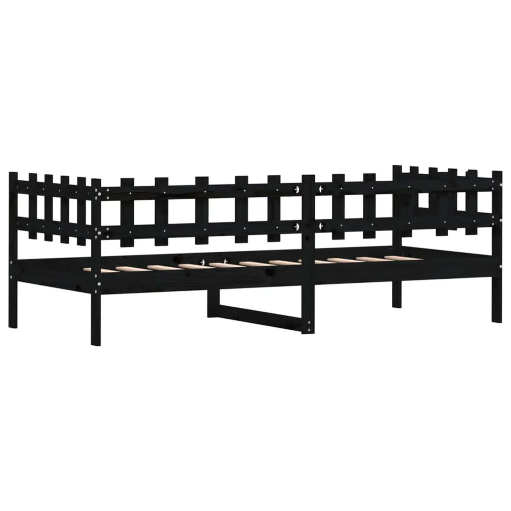 Vidaxl Day Bed Black Solid Pine Wood Single Multi-Position Backrest