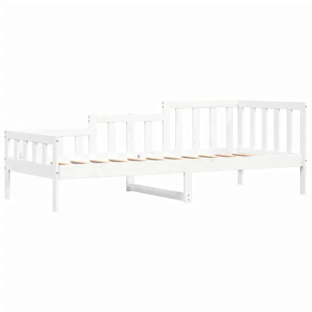 This classy single day bed mixes functionality with looks, perfect for any trendy interior. It easily changes from a comfy bed to a chic sofa, making it ideal for guest rooms, lounges, or kids' play areas. Sturdy Build: Made from solid pine wood, this day bed is strong and built to last, perfect for everyday use and hosting guests easily.Modern Aesthetic: The sleek white finish and minimalist vibes give it a stylish edge, enhancing your home decor while providing a practical sleep and lounge solution.Comfortable Experience: The slatted design holds the mattress securely, making for a good night's sleep. It's great for relaxing, reading, or having friends over, all in one functional piece of furniture.Easy Assembly: Set-up is a breeze, as the day bed comes with everything you need for quick assembly, so you can enjoy your new furniture soon.Compact Dimensions: With measurements of 38.6 in in width and 80.1 in in length, this day bed suits smaller spaces while still offering enough room for relaxing or sleeping.