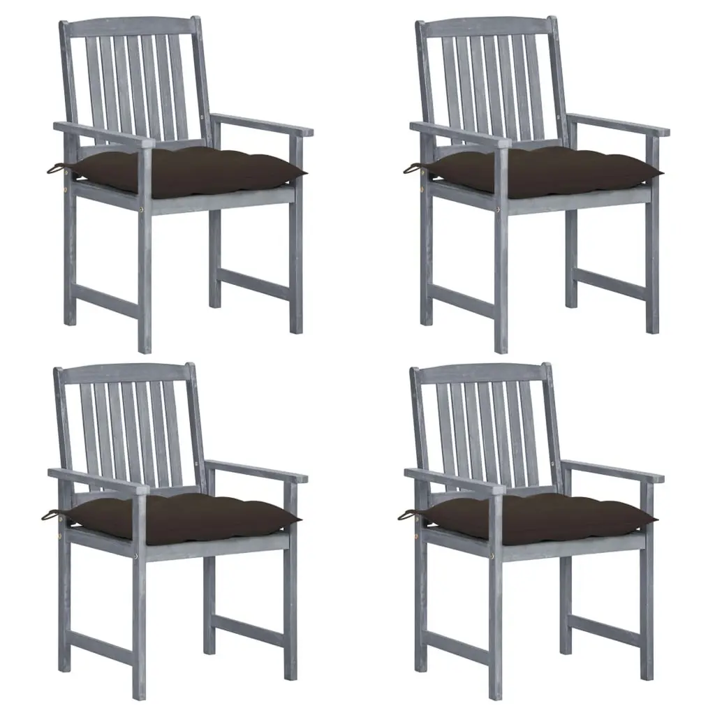Vidaxl Director's Chairs With Cushions, Set Of 4, Gray Solid Acacia Wood