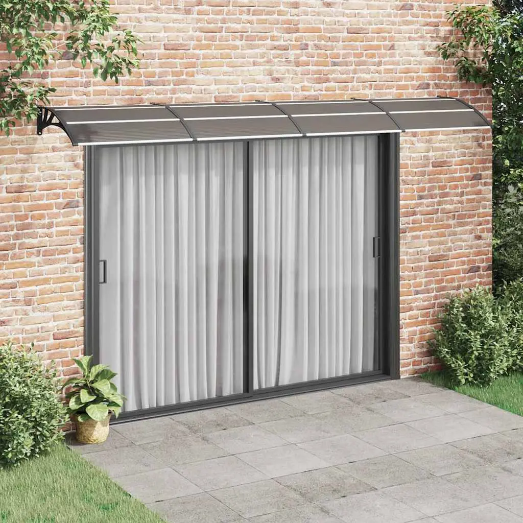 This Black Polycarbonate Door Canopy is perfect for keeping your doorways safe from the weather while also sprucing up your home. It measures a generous 157.5 x 39.4 in, and its modern rectangular design and sleek black finish fit beautifully with various architectural styles, making it a great addition to your porch or entrance. Durable Material: Made from high-quality polycarbonate and aluminum, this canopy can take on outdoor weather without losing its strength. The matte finish looks smart and helps cover any flaws, giving it a clean, elegant look.UV Protection: The polycarbonate material gives top-notch UV protection, keeping your doorway safe from harsh sunlight and extending the lifespan of your outdoor space.Convenient Size: With dimensions of 157.5 in by 39.4 in, this canopy fits over most standard doors, providing great coverage while keeping a sleek look.Simple Assembly: Built for easy setup, the canopy comes with everything you need, including various brackets and connectors, so you can secure it with just a drill and screwdriver.Suitable for Outdoor Use: Perfect for placement over front or back doors and porches, this canopy efficiently guards entryways from rain and snow, ensuring a dry space underneath even in harsh weather.