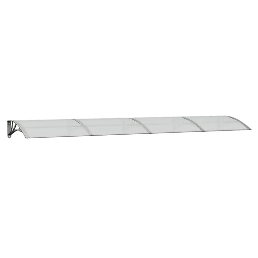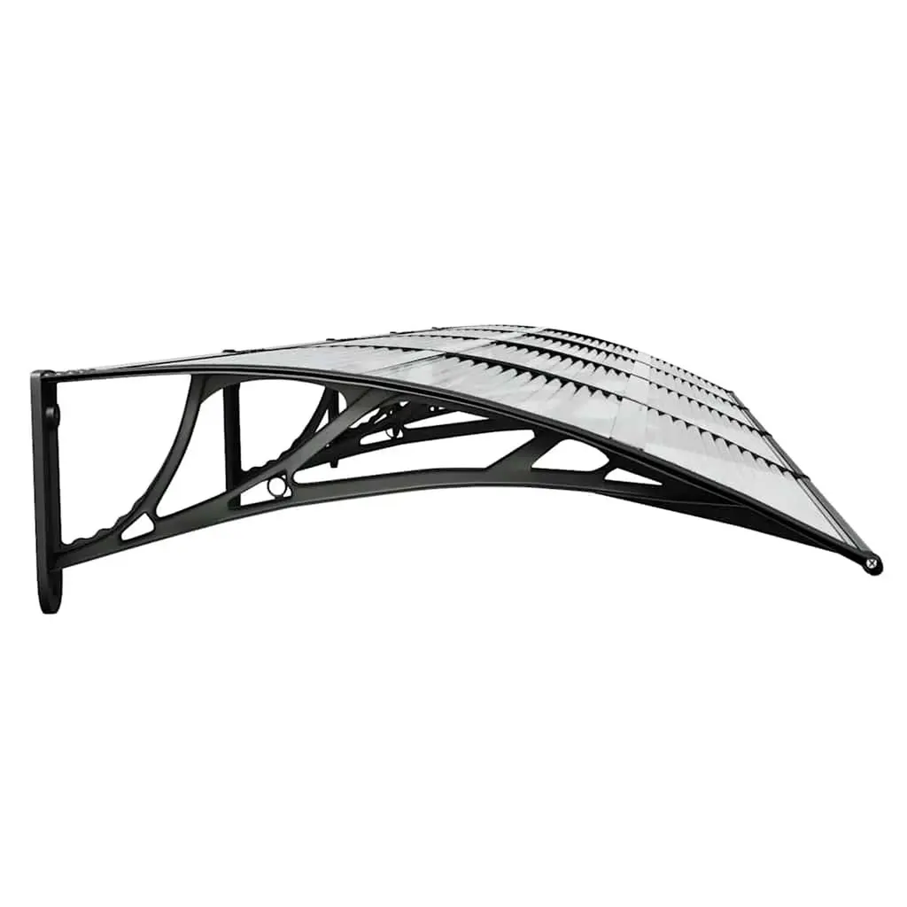 This Door Canopy is a chic and functional option for any doorway. Made of polycarbonate and aluminum, it combines durability with a cool, stylish look, perfect for both modern and traditional homes. With generous dimensions of 138 x 30 in., it effectively shields doorways from the elements while adding a sophisticated touch. Whether you're jazzing up the front porch or providing shelter for guests at the back door, its smooth texture and transparent design balance both function and aesthetic appeal. Durable Material: Made from polycarbonate and aluminum, this canopy is designed for lasting outdoor use, standing up to rain and UV rays with ease.Weather Protection: Excellent at keeping rain and snow away, ensuring your doorway stays dry and welcoming no matter the season.Easy Assembly: You can set this door canopy up quickly with just a screwdriver. It only needs two people, making it hassle-free.Stylish Design: With its modern rectangular shape and chic combination of black and transparent parts, it looks great in any outdoor setting.Recommended Use: This canopy's perfect for use as a rain shelter, ideal over front or back doors, patios, or balconies. It's versatile and stylish, adding function to your space.