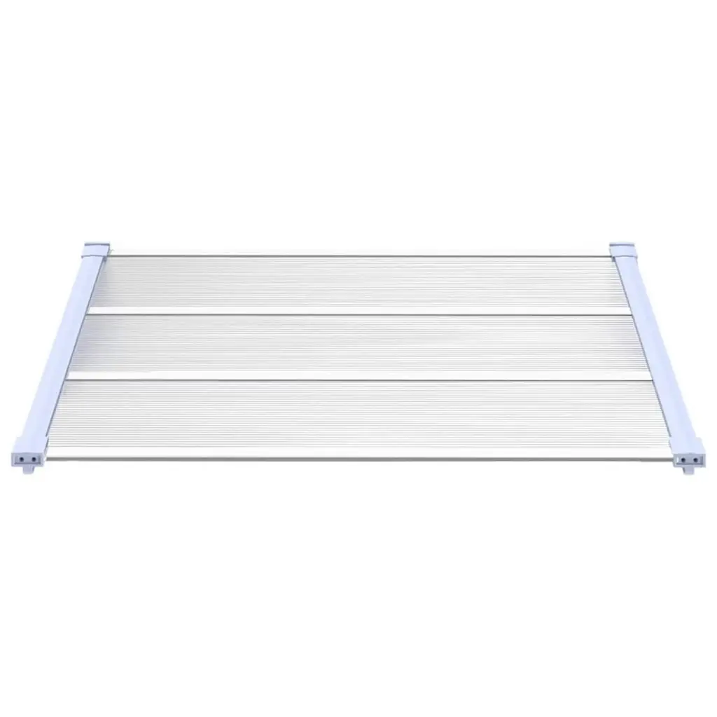 This modern door canopy is the perfect choice for any entrance. It looks sharp and works great, providing solid protection from the weather. With its cool grey design and transparent finish, it makes your space inviting and stylish.Weather Protection: This door canopy effectively shields your doorway from rain, snow, and direct sun, keeping your entrance looking good and working well year-round. It helps protect your door too.Aesthetic Appeal: Its modern design and clear panels add a stylish dimension to any building, matching various architectural styles. The clean lines and matte finish give it a polished yet subtle look, making it great for homes and businesses.Durable Material: Made with high-quality polycarbonate, ABS, and aluminum, this canopy is tough enough for harsh weather while maintaining its structure. You'll love its durability day in and day out.Easy Assembly: Each kit includes all the required parts and clear instructions for quick setup. Most users can get it going with just a screwdriver, making installation a breeze.Versatile Usage: Perfect for front or back doors, porches, or patios, this canopy can be placed wherever suits you best. Its shape provides ample coverage while looking neat without overpowering the space.