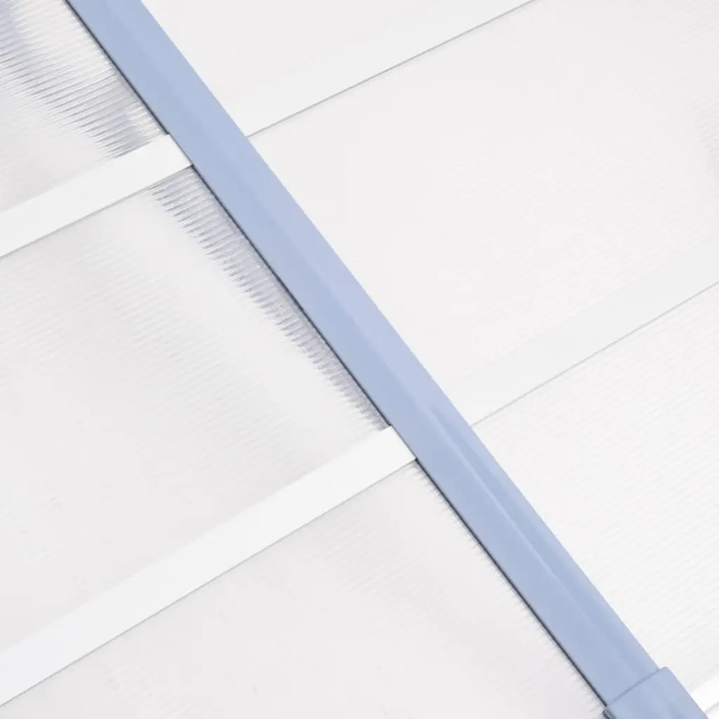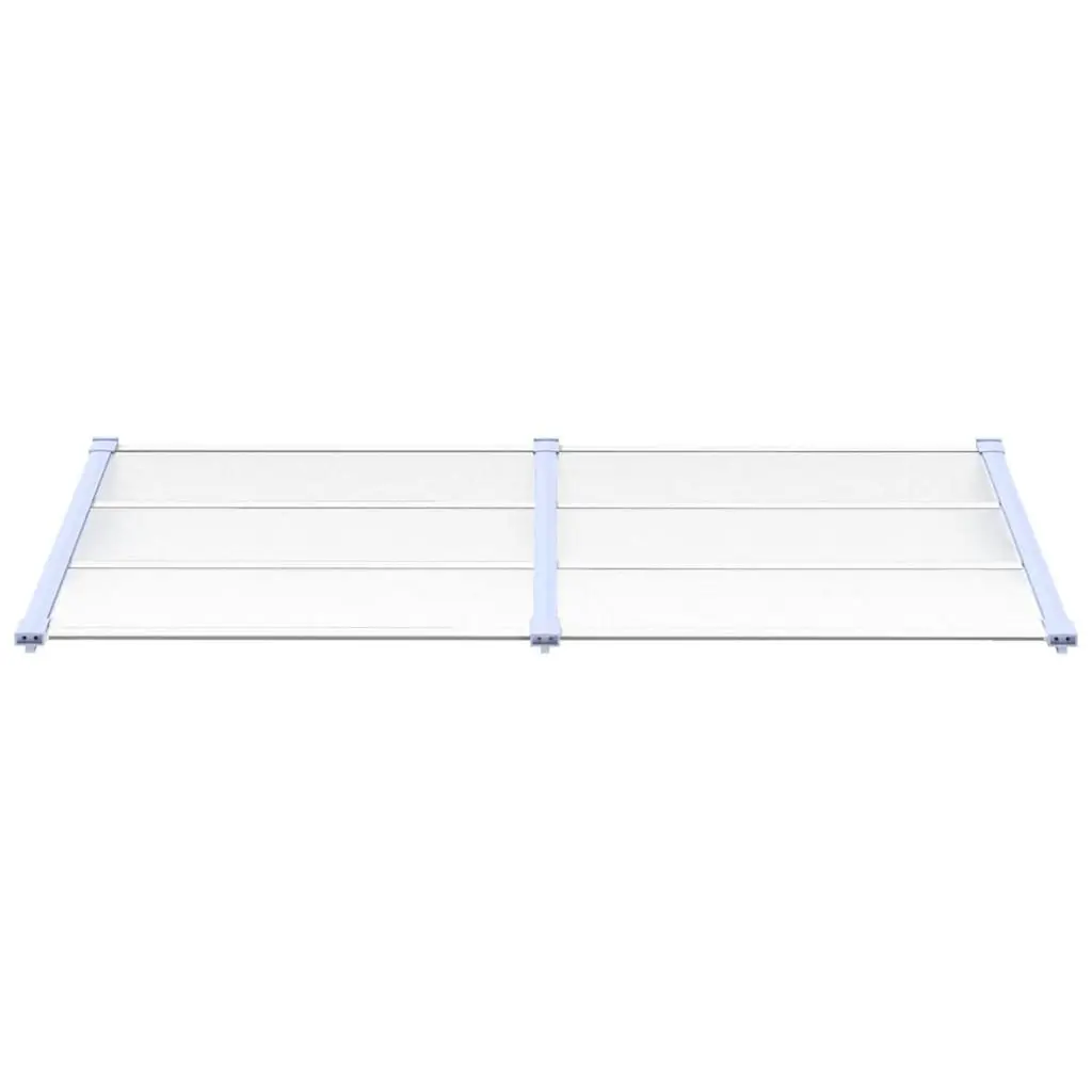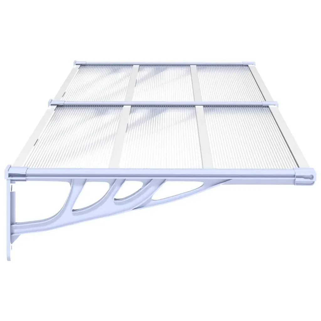 This door canopy awning is a stylish way to enhance any home's entrance while providing vital weather protection. With a modern design featuring clean lines and a smooth finish, it fends off rain and snow while boosting the aesthetic appeal of your entryway. This canopy is built tough with a solid frame made of strong ABS brackets and anodized aluminum bars that resist rust and wear.The polycarbonate panel is UV resistant and waterproof, so your doorstep stays safe from rain, snow, and sun.Its sleek gray and transparent look fits with various architectural styles, giving any doorway a smart, modern vibe.Easy to set up, the canopy comes with everything you need, including 6 divided PC boards, connectors, and brackets that allow for quick assembly with just a screwdriver.Measuring 78.3 x 35.4 in, this canopy fits neatly over most standard door frames, perfect for both front and back entrances.