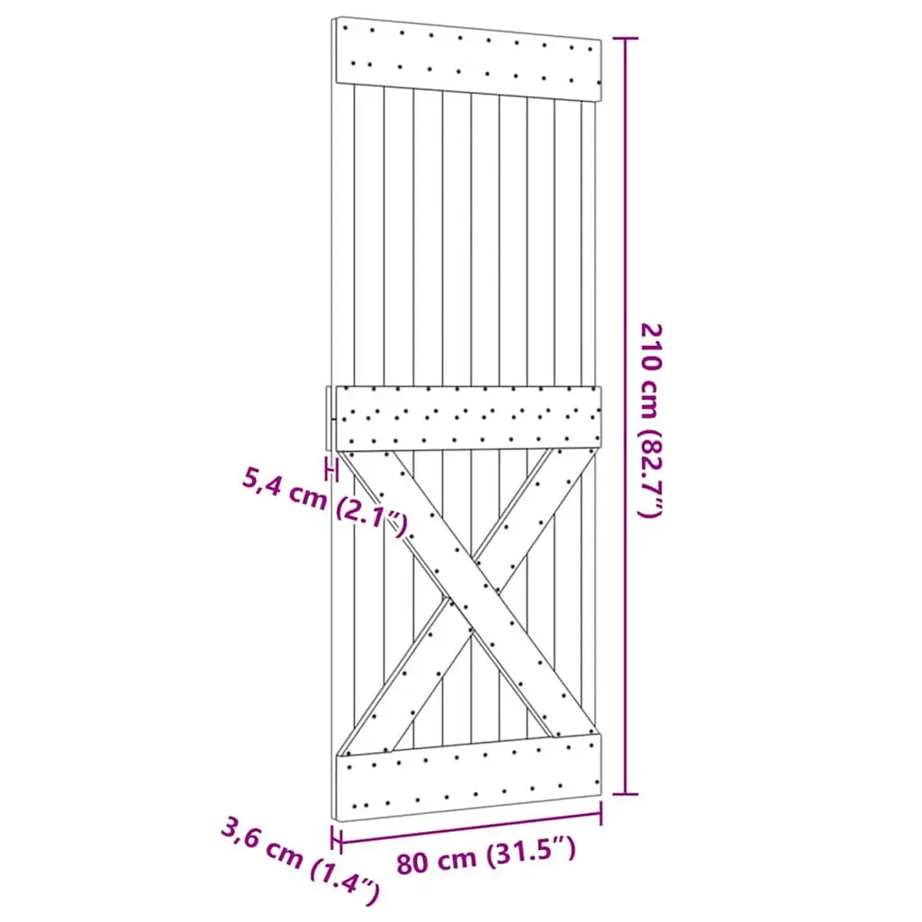 This solid pine wood door is designed to enrich the entrance of your home and make your home more secure.Durable Solid Pine Wood: Crafted from solid, untreated pine wood, this barn door features natural grain and distinctive knots, offering modern rustic charm. Its solid construction ensures durability, while the natural wood finish adds warmth and character to your space, creating a lasting feature for your home.Space-Saving Sliding Design: Designed for practicality and style, this door smoothly slides along the wall, saving valuable floor space. Its sliding design creates a sense of openness and flow, perfect for smaller rooms or adding a spacious feel to any interior.Adaptable for Various Spaces: Designed for flexible installation on both wooden and concrete walls, this sliding door easily adapts to different rooms, from bedrooms and kitchens to barns and garages. Its versatility adds function and style where you need it most.Ideal for Modern & Minimalist Homes: This barn-style door complements both modern and minimalist decor with its clean, understated lines and natural wood tone. It brings a cozy yet refined look, enhancing contemporary spaces with warm, rustic appeal.Easy to Install & Maintain: Designed for hassle-free installation with straightforward instructions, this barn door is quick and efficient to set up. The untreated pine wood finish is easy to maintain, requiring only basic care to preserve its natural beauty and ensure lasting style.Good to know:To complement your NARVIK door with a stunning sliding door rail, take a look at our SKIEN range. Make sure that the sliding door rail size matches your door size before purchasing.