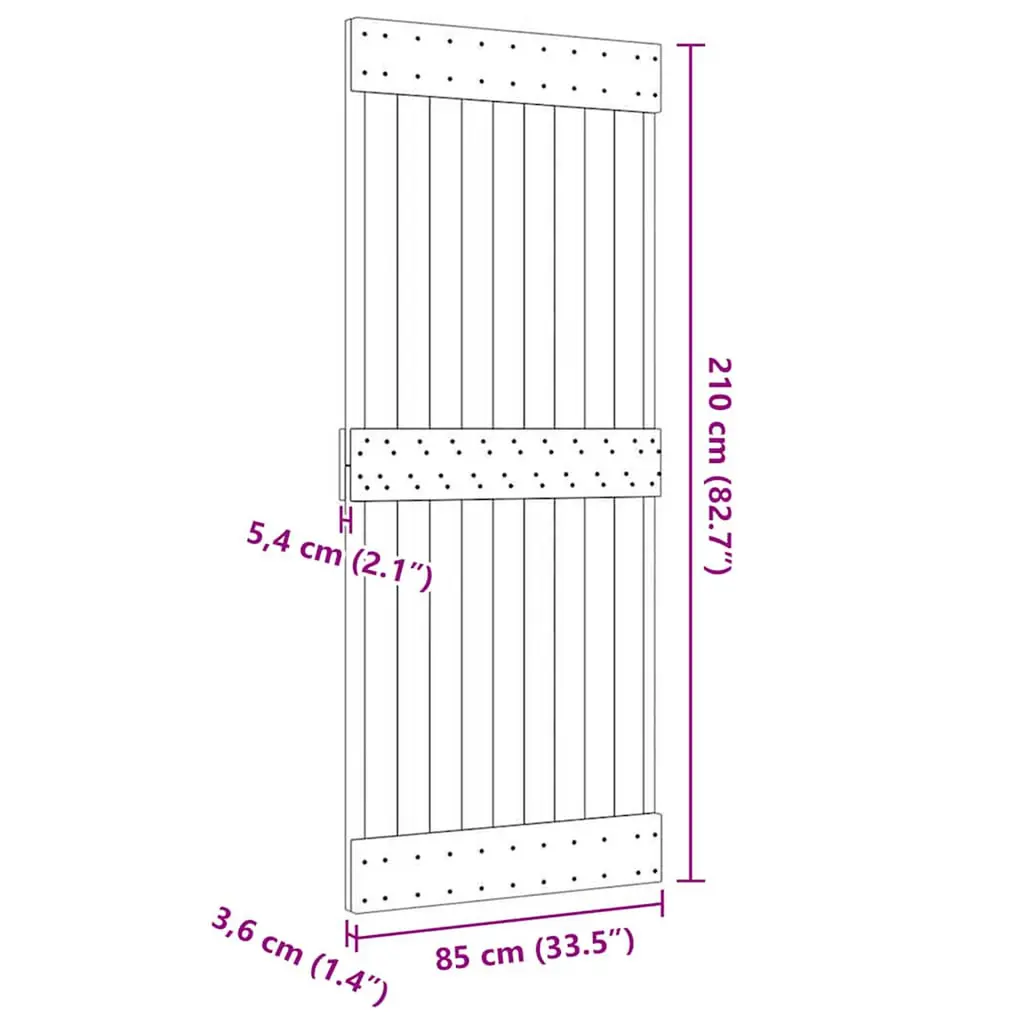 This solid pine wood door is designed to enrich the entrance of your home and make your home more secure.Durable Solid Pine Wood: Crafted from solid, untreated pine wood, this barn door features natural grain and distinctive knots, offering modern rustic charm. Its solid construction ensures durability, while the natural wood finish adds warmth and character to your space, creating a lasting feature for your home.Space-Saving Sliding Design: Designed for practicality and style, this door smoothly slides along the wall, saving valuable floor space. Its sliding design creates a sense of openness and flow, perfect for smaller rooms or adding a spacious feel to any interior.Adaptable for Various Spaces: Designed for flexible installation on both wooden and concrete walls, this sliding door easily adapts to different rooms, from bedrooms and kitchens to barns and garages. Its versatility adds function and style where you need it most.Ideal for Modern & Minimalist Homes: This barn-style door complements both modern and minimalist decor with its clean, understated lines and natural wood tone. It brings a cozy yet refined look, enhancing contemporary spaces with warm, rustic appeal.Easy to Install & Maintain: Designed for hassle-free installation with straightforward instructions, this barn door is quick and efficient to set up. The untreated pine wood finish is easy to maintain, requiring only basic care to preserve its natural beauty and ensure lasting style.Good to know:To complement your NARVIK door with a stunning sliding door rail, take a look at our SKIEN range. Make sure that the sliding door rail size matches your door size before purchasing.