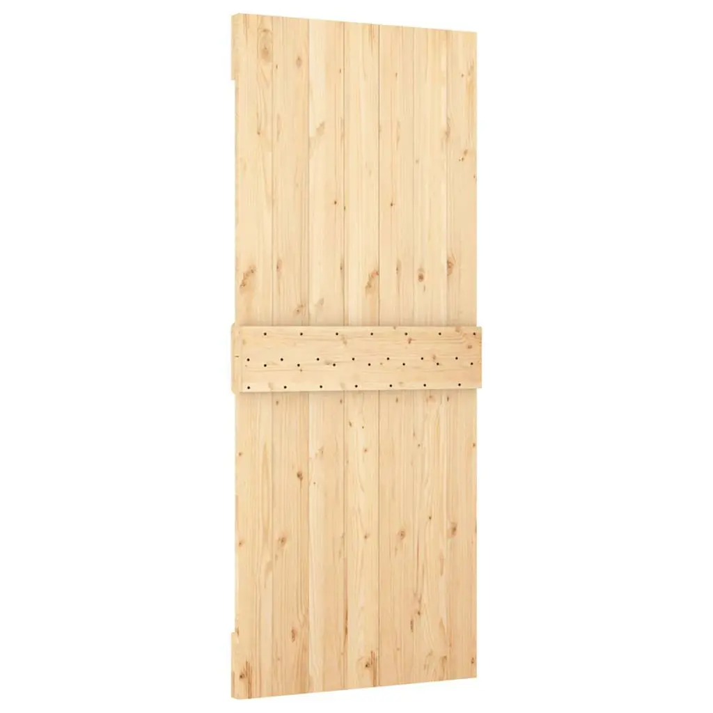 This solid pine wood door is designed to enrich the entrance of your home and make your home more secure.Durable Solid Pine Wood: Crafted from solid, untreated pine wood, this barn door features natural grain and distinctive knots, offering modern rustic charm. Its solid construction ensures durability, while the natural wood finish adds warmth and character to your space, creating a lasting feature for your home.Space-Saving Sliding Design: Designed for practicality and style, this door smoothly slides along the wall, saving valuable floor space. Its sliding design creates a sense of openness and flow, perfect for smaller rooms or adding a spacious feel to any interior.Adaptable for Various Spaces: Designed for flexible installation on both wooden and concrete walls, this sliding door easily adapts to different rooms, from bedrooms and kitchens to barns and garages. Its versatility adds function and style where you need it most.Ideal for Modern & Minimalist Homes: This barn-style door complements both modern and minimalist decor with its clean, understated lines and natural wood tone. It brings a cozy yet refined look, enhancing contemporary spaces with warm, rustic appeal.Easy to Install & Maintain: Designed for hassle-free installation with straightforward instructions, this barn door is quick and efficient to set up. The untreated pine wood finish is easy to maintain, requiring only basic care to preserve its natural beauty and ensure lasting style.Good to know:To complement your NARVIK door with a stunning sliding door rail, take a look at our SKIEN range. Make sure that the sliding door rail size matches your door size before purchasing.