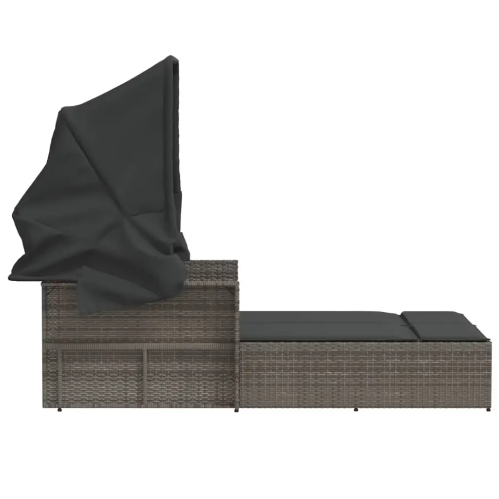Vidaxl Double Sun Lounger With Canopy-gray Poly Rattan, Adjustable Backrest, Washable Cushions, Outdoor/patio/garden Day Bed