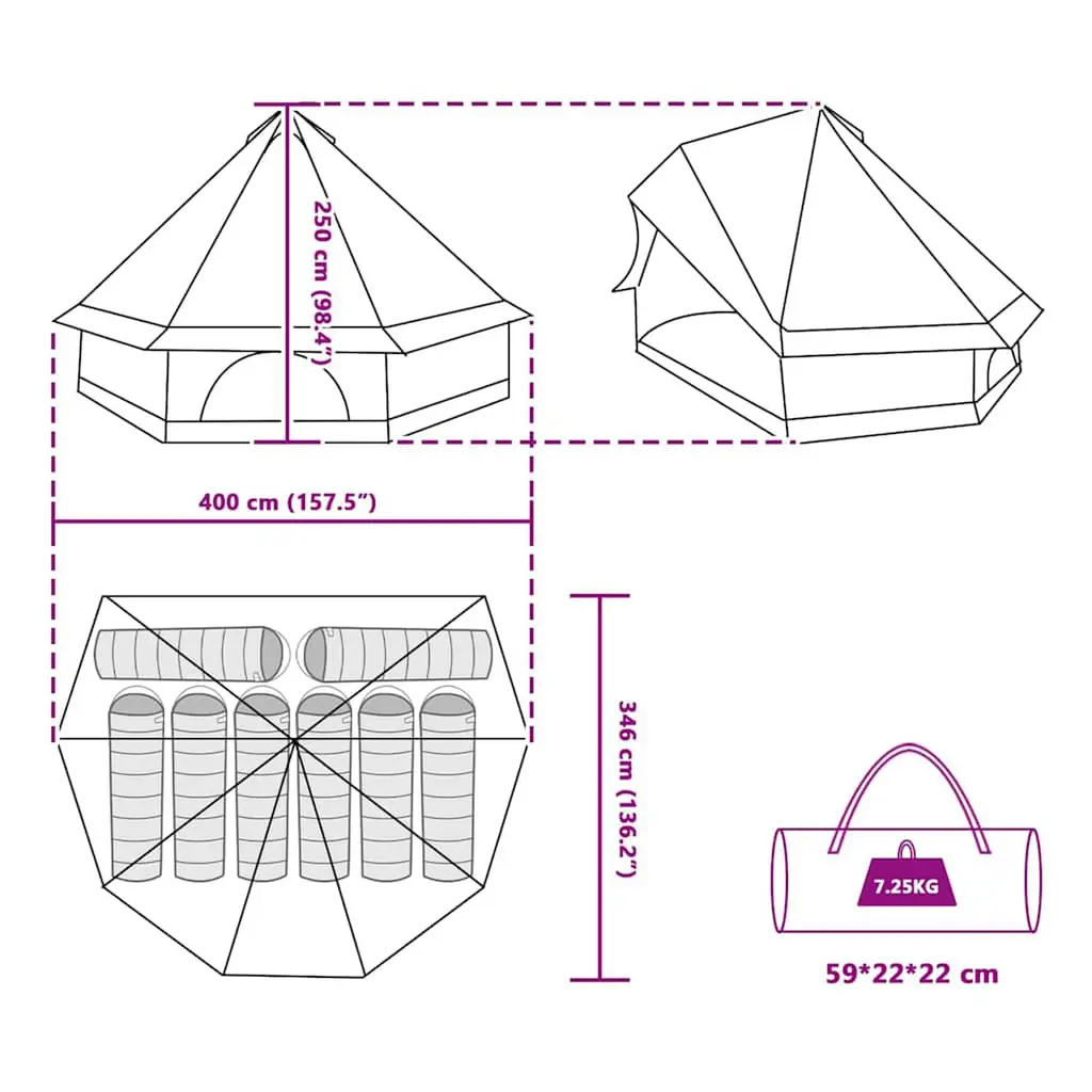 This outdoor tipi tent is perfect for giving you solid protection while you’re on a camping adventure. With its sleek, modern look and solid design, it keeps things simple and functional for outdoor lovers. There's loads of space inside, making it a great base for family outings, and it gives you a cozy spot to relax under the stars. The tent's stylish lines meet practical features, creating a fun place to hang out outdoors. It's all about blending practicality with style whether you’re at a campsite or at home in your backyard. Top-Quality Materials Made from P/Taffeta, poly mesh, and fiberglass reinforced plastic, this family tipi tent delivers reliable performance outdoors. These materials are picked for their water resistance and tough build, so you’re covered when unexpected rain comes along while still being comfy inside. They’re put together in a way that ensures the tent keeps its shape and function while you enjoy your summer adventures.Useful Features The tent is fitted with a zip closure for easy entry and exit, plus a manual foldable design that makes setup and storage super quick. Ground anchors and ropes really boost the tent’s stability, keeping it secure even when the wind picks up. These thoughtful features mean you can spend more time enjoying nature and less time sorting stuff out.Handy Extras With weatherproof materials, this tent keeps water out, so you can have a dry space inside. Its fire-retardant quality also gives you peace of mind when you’re near campfires or in fire-sensitive areas. It’s built for hassle-free use, handling easily to ensure you’re always secure and satisfied each time you use it.Recommended Activities This tent is perfect for outdoor camping, creating safe and comfy conditions for family outings. Whether you’re off for a weekend in the woods or having backyard adventures, it’s versatile enough to suit different needs, promoting both chill escapes and lively activities.Maintenance Tips Designed for outdoor use, this tent doesn’t need much upkeep. Just keep it clean to keep it looking sharp and working well; dirt can be easily wiped off after camping trips. Its durable fabric only needs a basic clean to keep it looking fresh, ready for loads of fun times ahead.