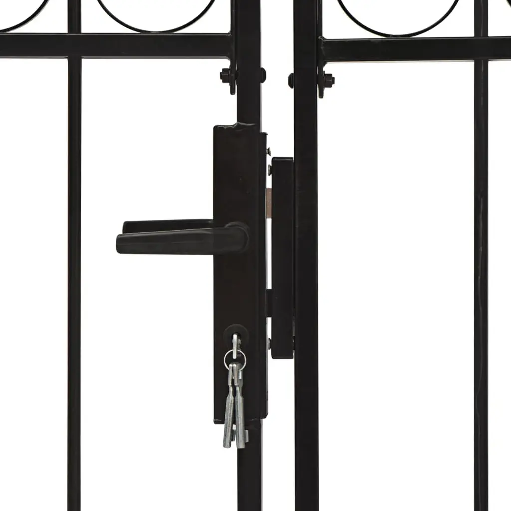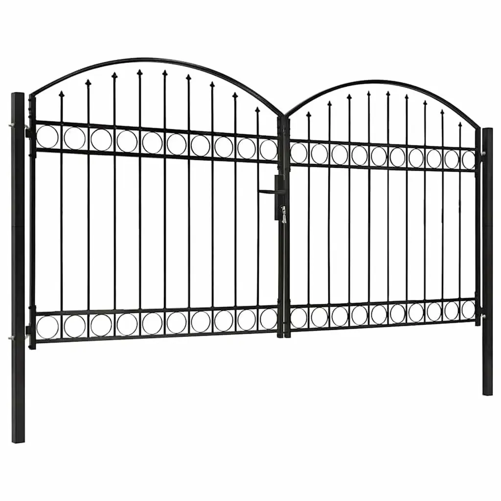 Vidaxl Fence Gate Double Door With Arched Top Steel 157.5x78.7" Black
