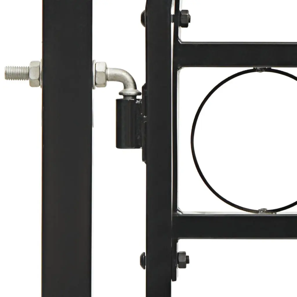 This double fence gate will make a practical, contemporarily styled entryway to seclude your garden from the outside world. Highly stable and durable, the gate will form a practical security barrier for your garden, patio or terrace.With its elegant, arched top design and strong horizontal braces to reinforce the frame, our garden gate will provide a high degree of security, while forming a fabulous entryway onto your property. Manufactured from heavy-duty steel, the gate is powder-coated.This garden gate is a great combination of style, strength and stability!
