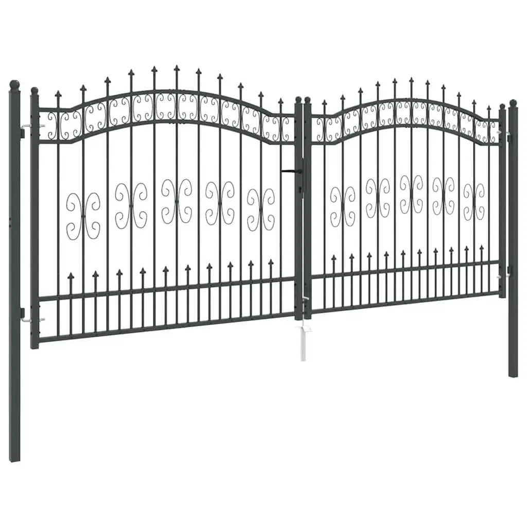 Vidaxl Fence Gate With Spear Top Black 120.1"x 49.2" Powder-Coated Steel