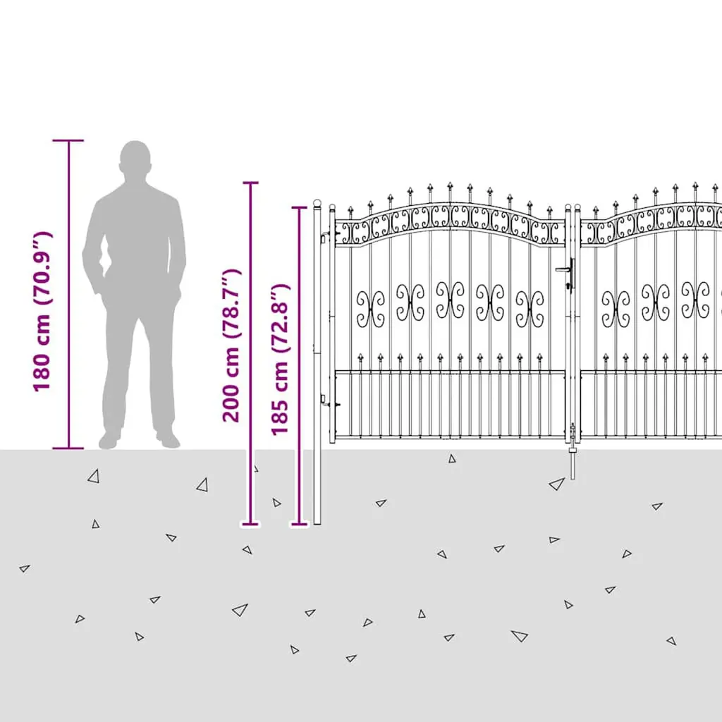 Vidaxl Fence Gate With Spear Top Black 120.1"x 59.1" Powder-Coated Steel